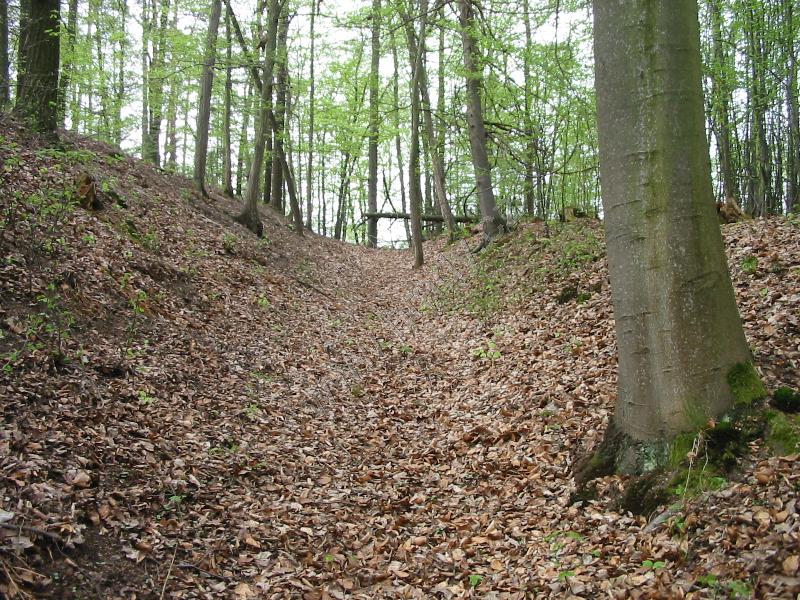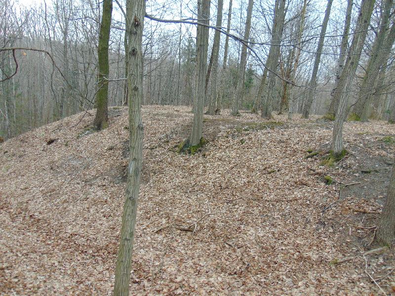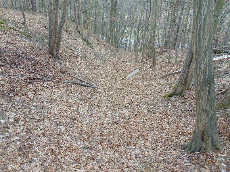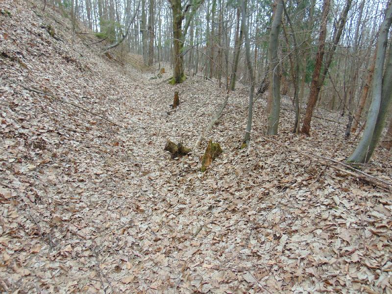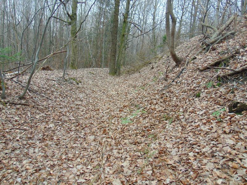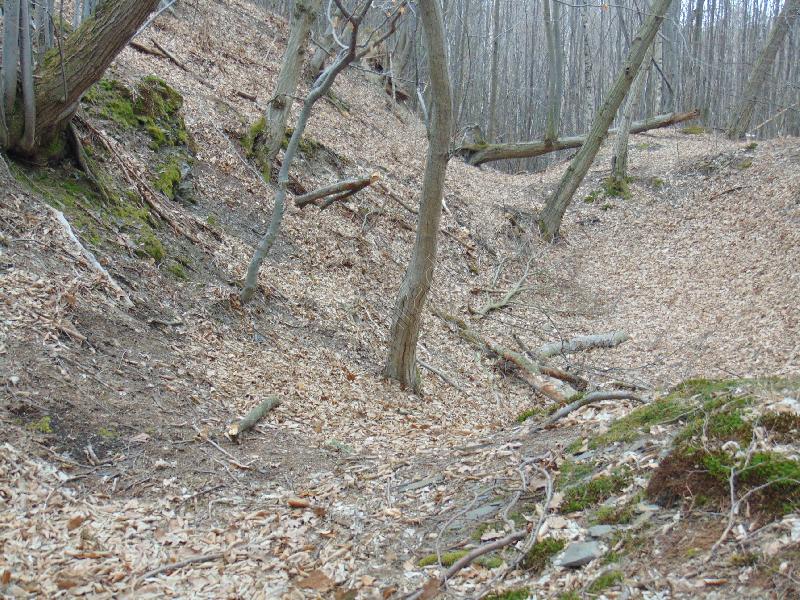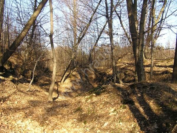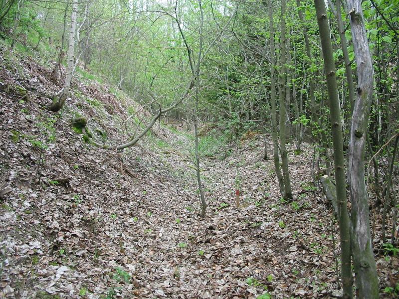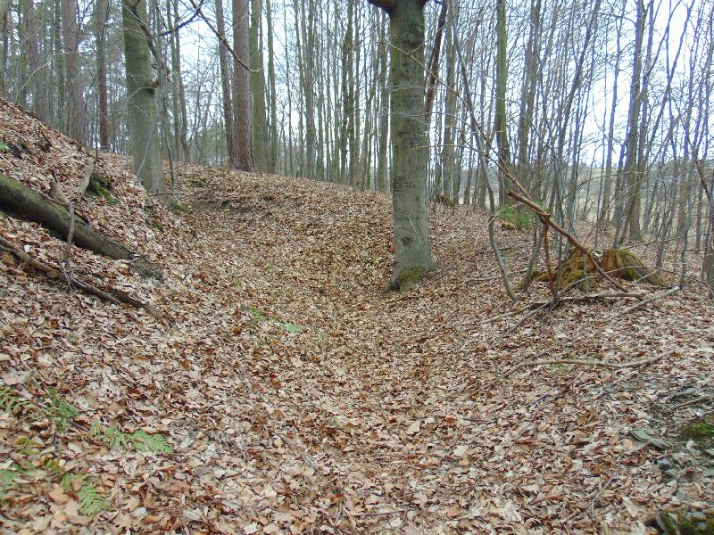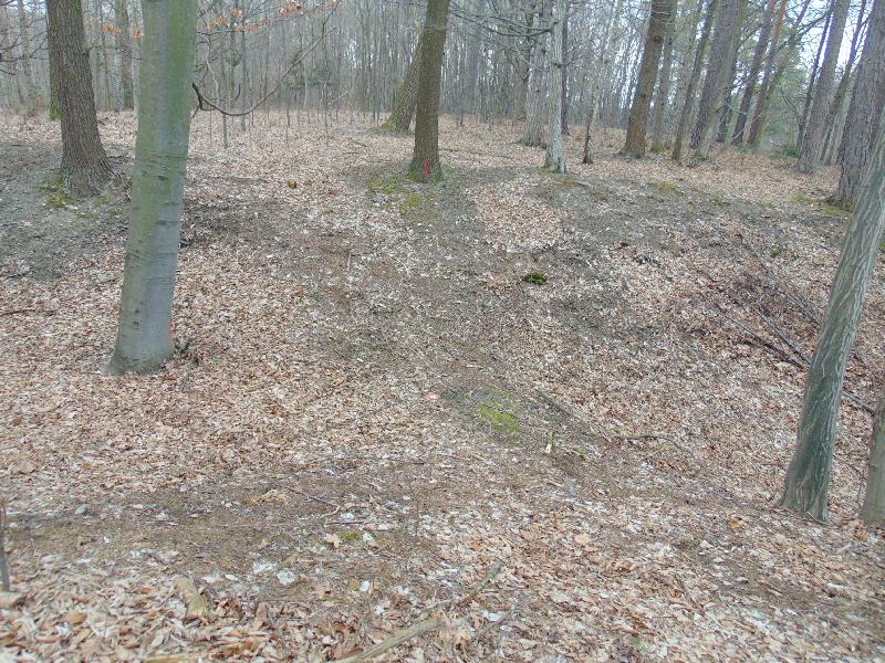 pohled ze severovýchodního nároží do příkopu na východní straně lokality
