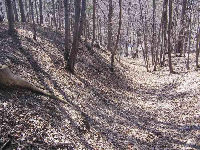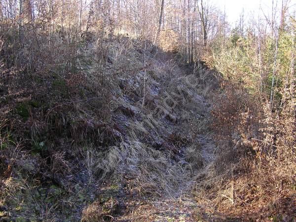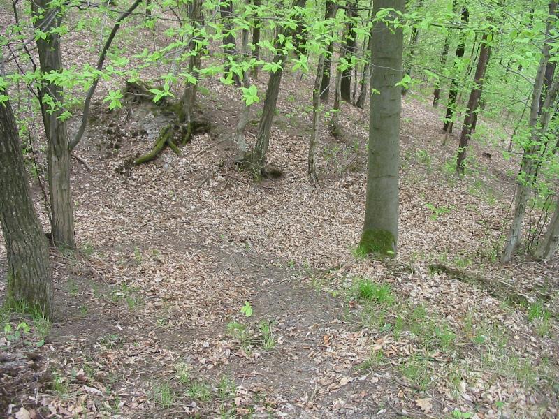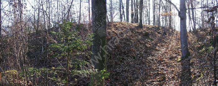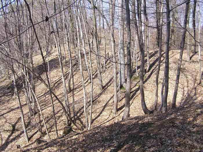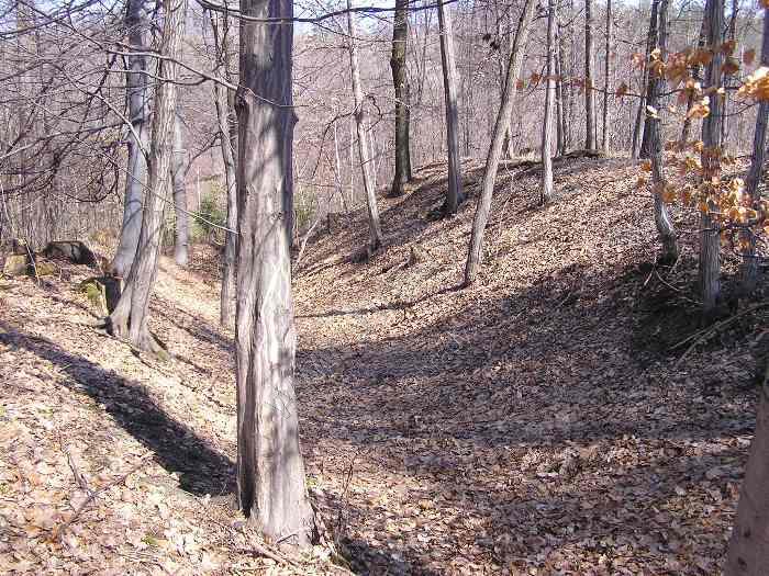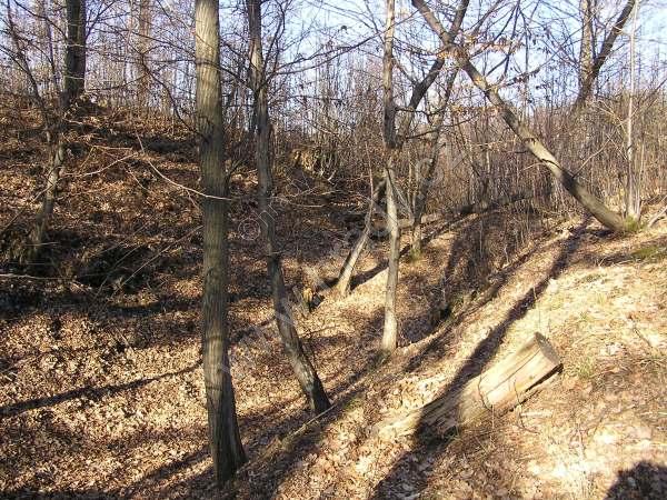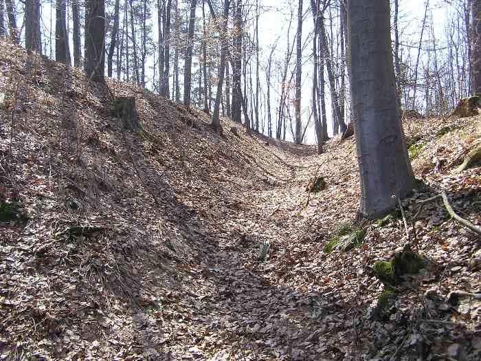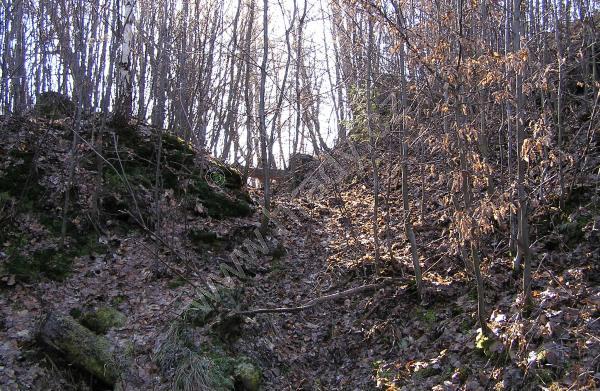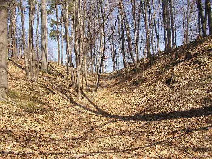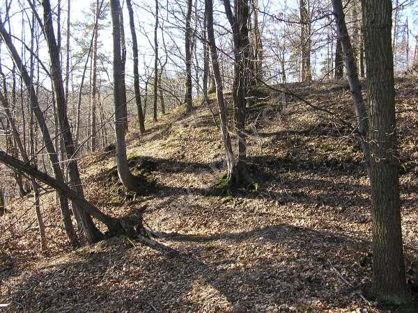ukončení východního příkopu na jihu,kde přechází v prudký sráz