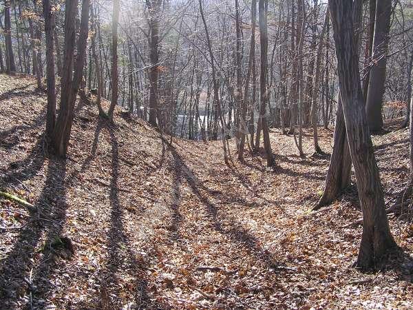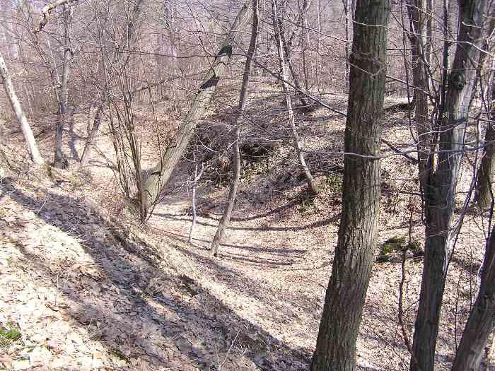 pohled od severovýchodního nároží lokality do příkopu na severní straně hrádku