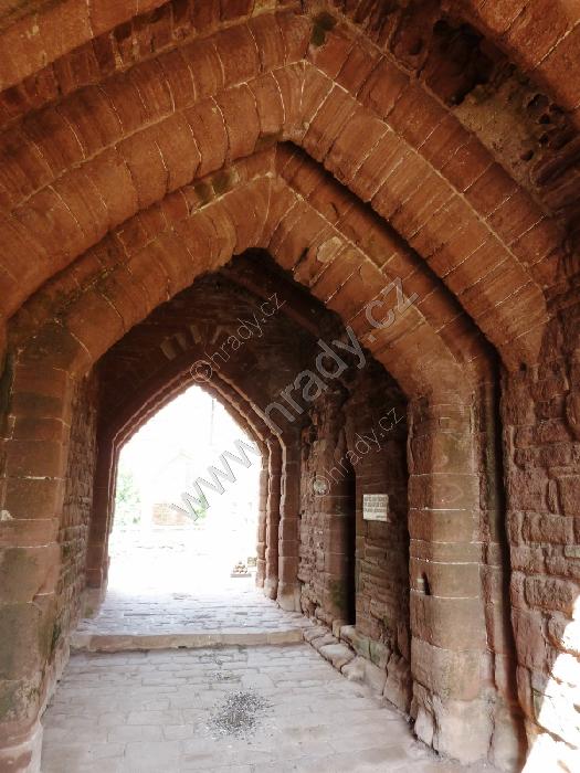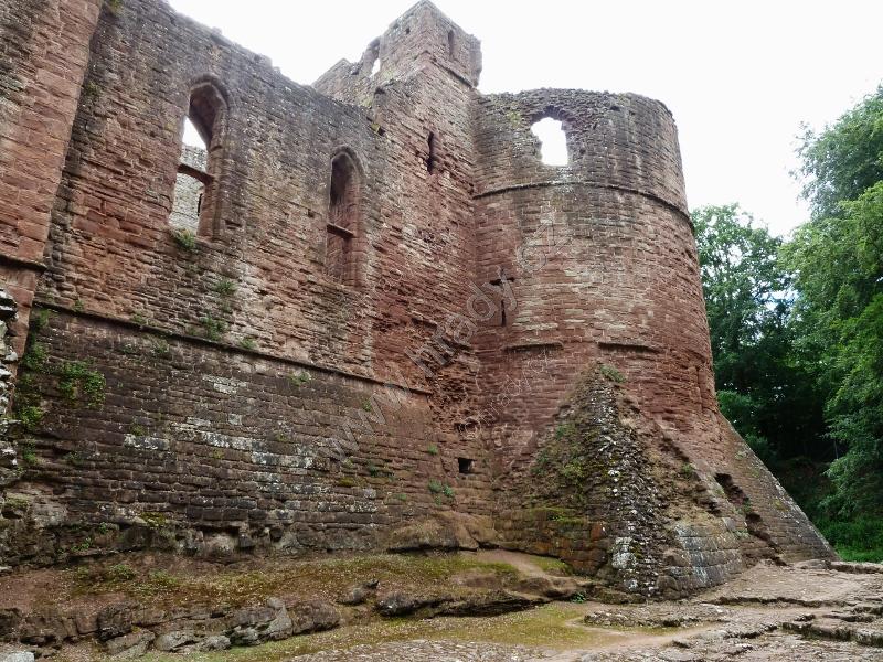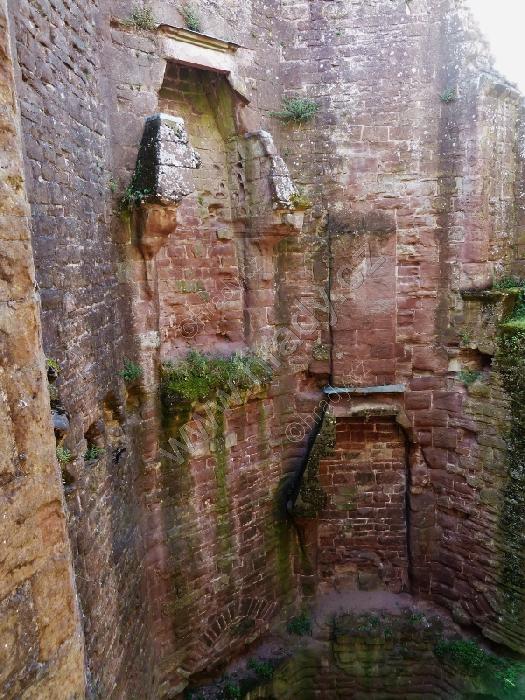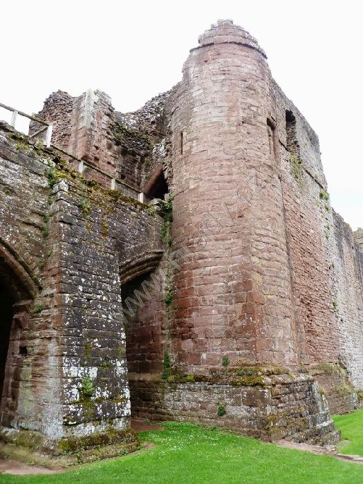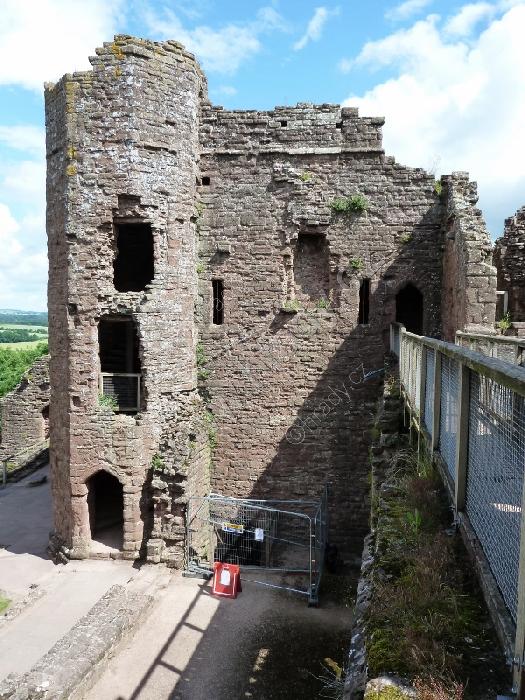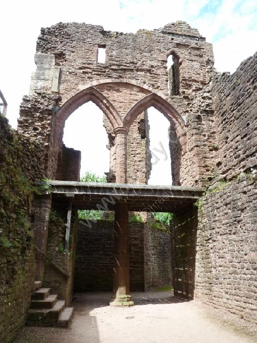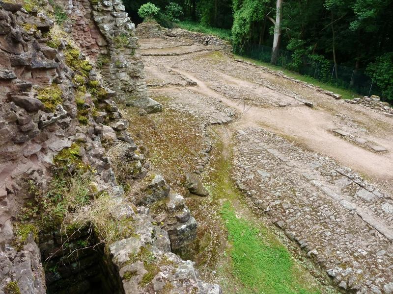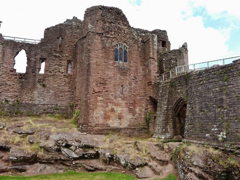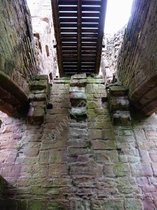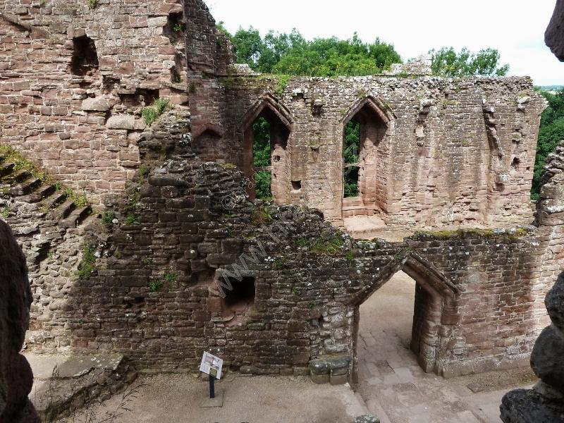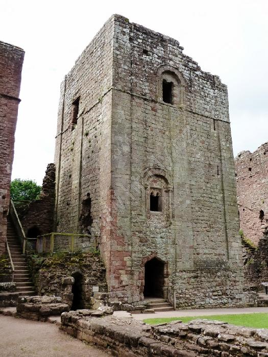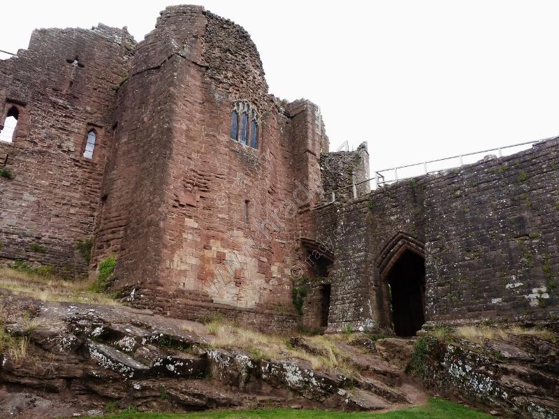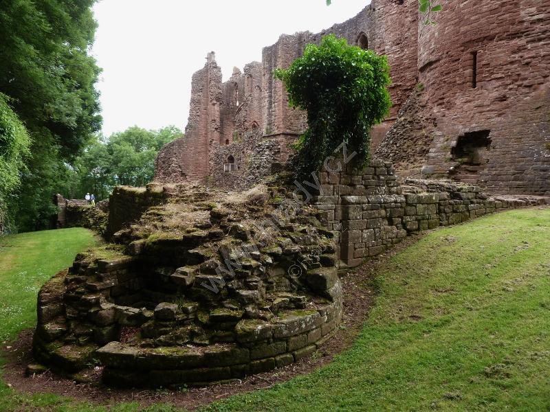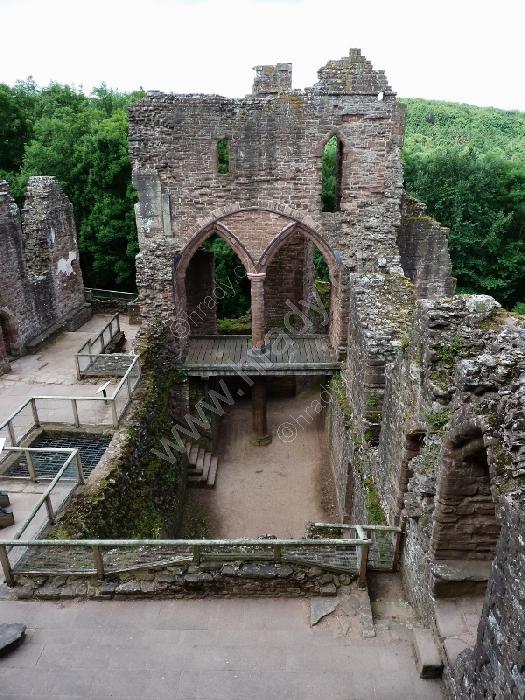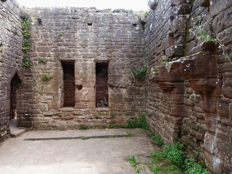 Přízemí JZ věže. Odtud se vynášelo skladované jídlo do kuchyně která byla napravo a nebo přímo do velkého sálu za zdí. Velký sál na anglických hradech měl tradičně tři dveře na straně odkud se nosilo jídlo, jedny vedly přímo z kuchyně, druhé ze spižírny a třetí z vinného a pivního sklepa. Goodrich na to neměl místo, takže šlo o improvizaci.