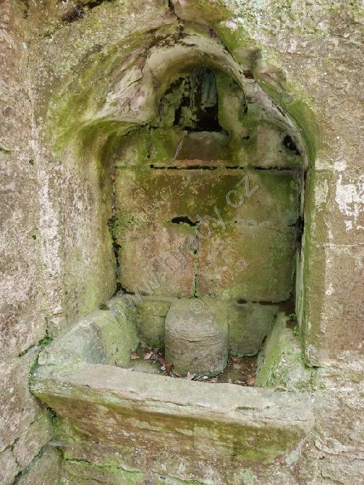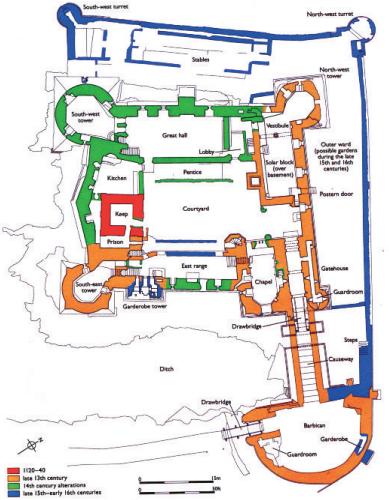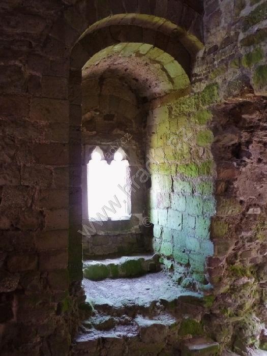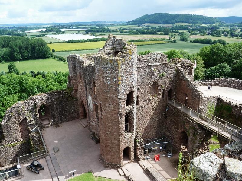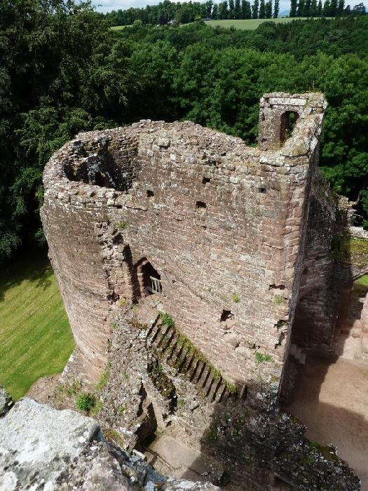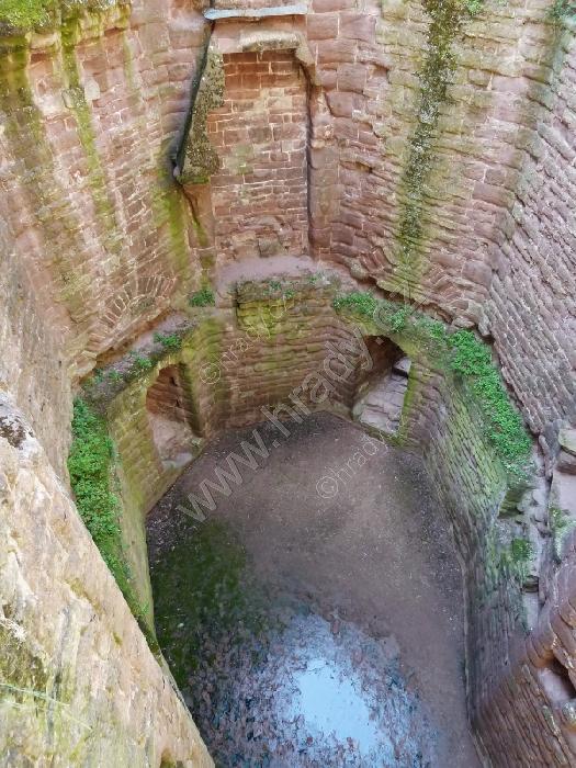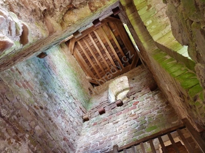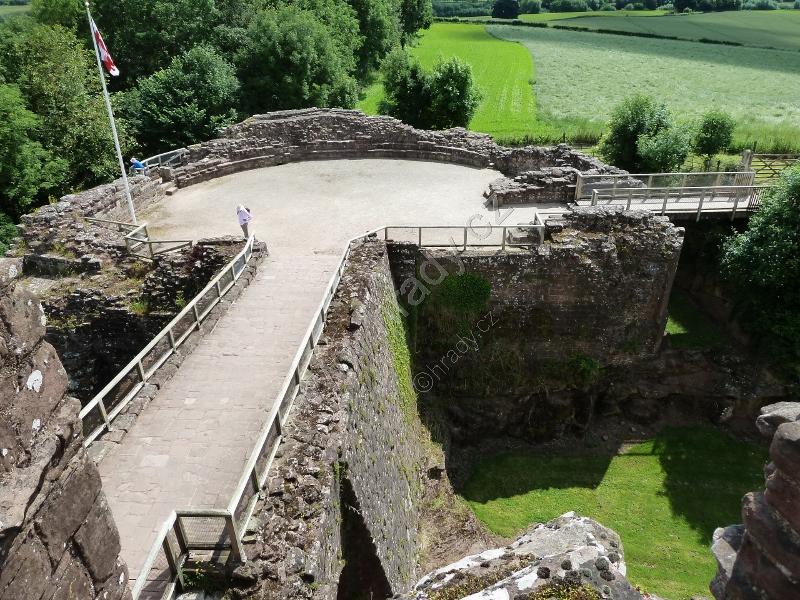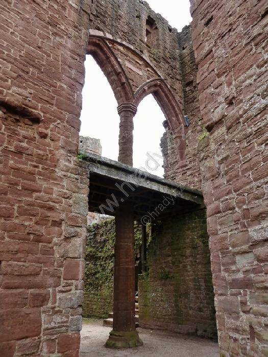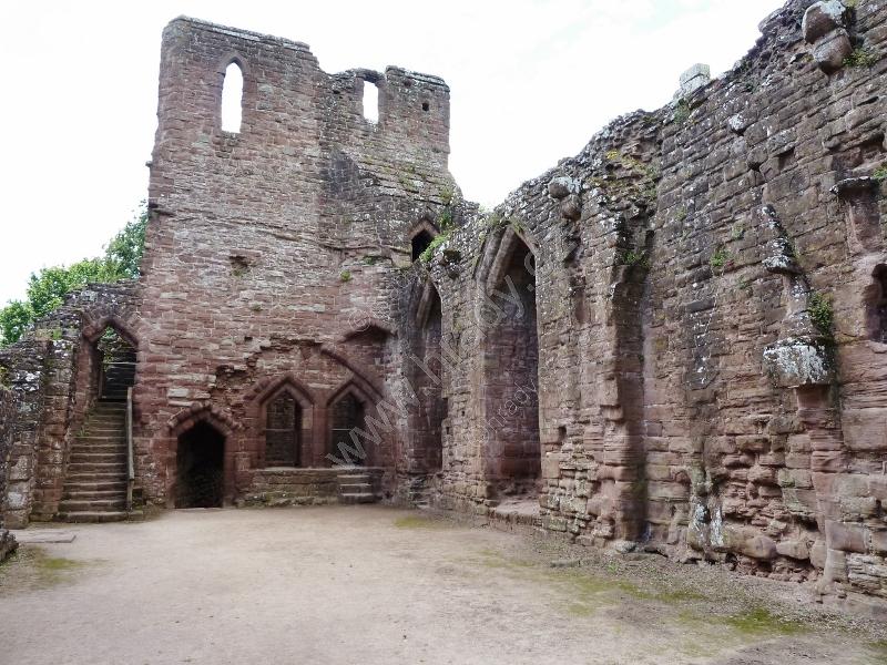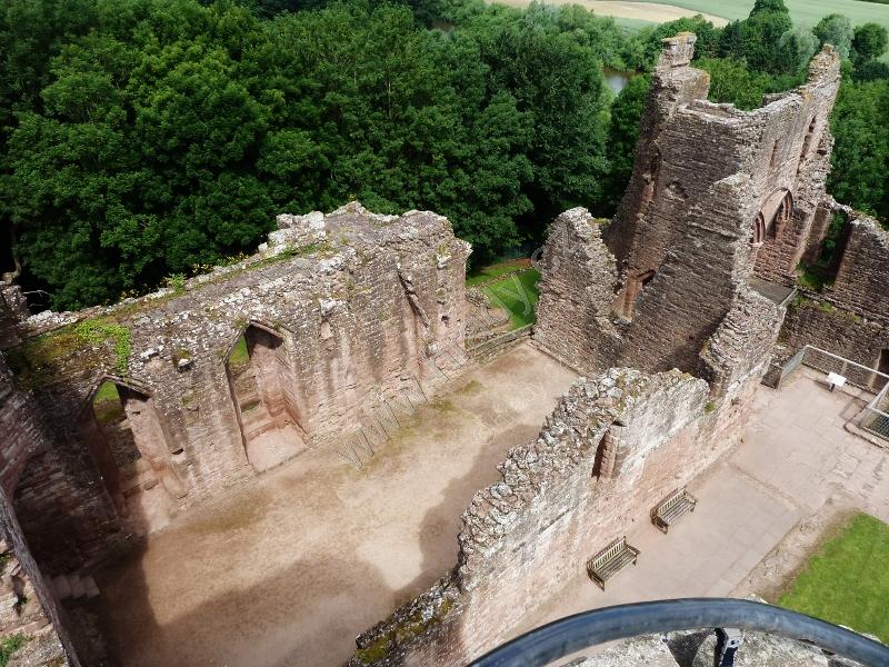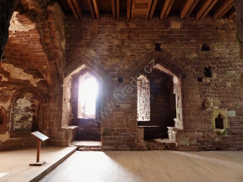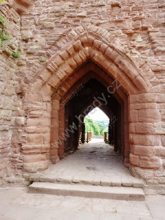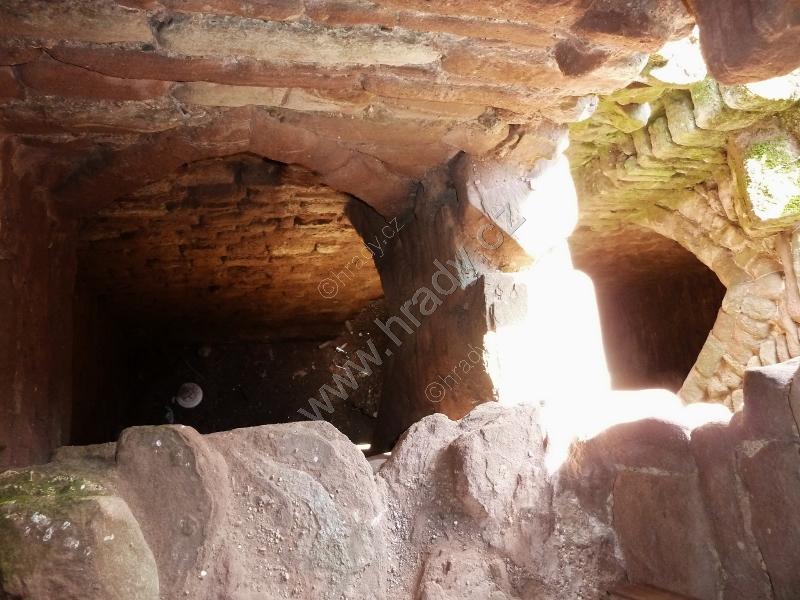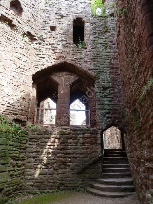 Přízemí JZ věže. Odtud se vynášelo skladované jídlo do kuchyně která byla napravo a nebo přímo do velkého sálu za zdí. Velký sál na anglických hradech měl tradičně tři dveře na straně odkud se nosilo jídlo, jedny vedly přímo z kuchyně, druhé ze spižírny a třetí z vinného a pivního sklepa. Goodrich na to neměl místo, takže šlo o improvizaci.