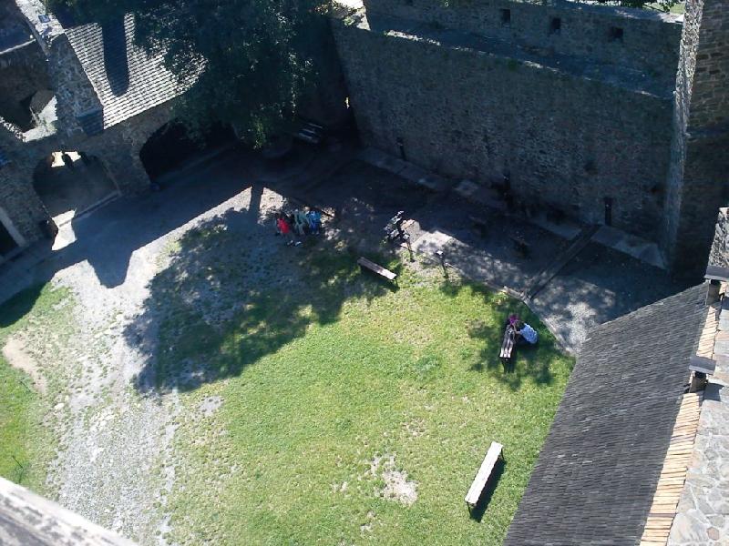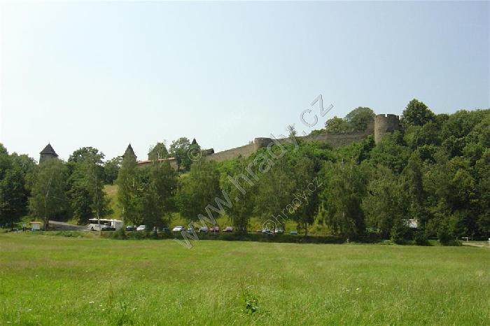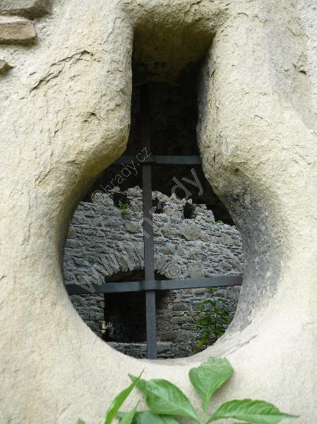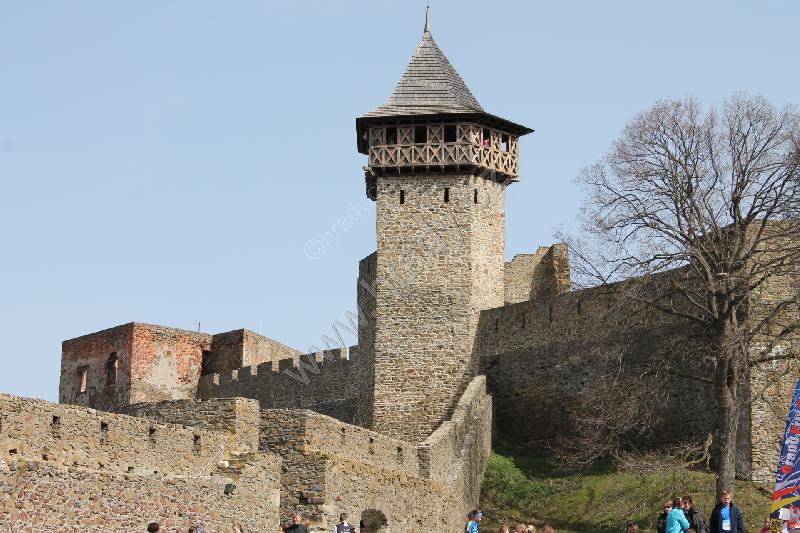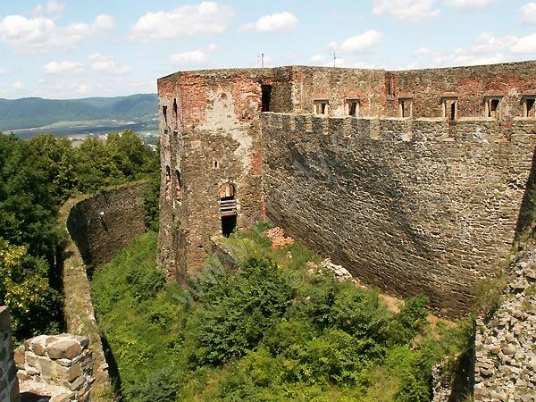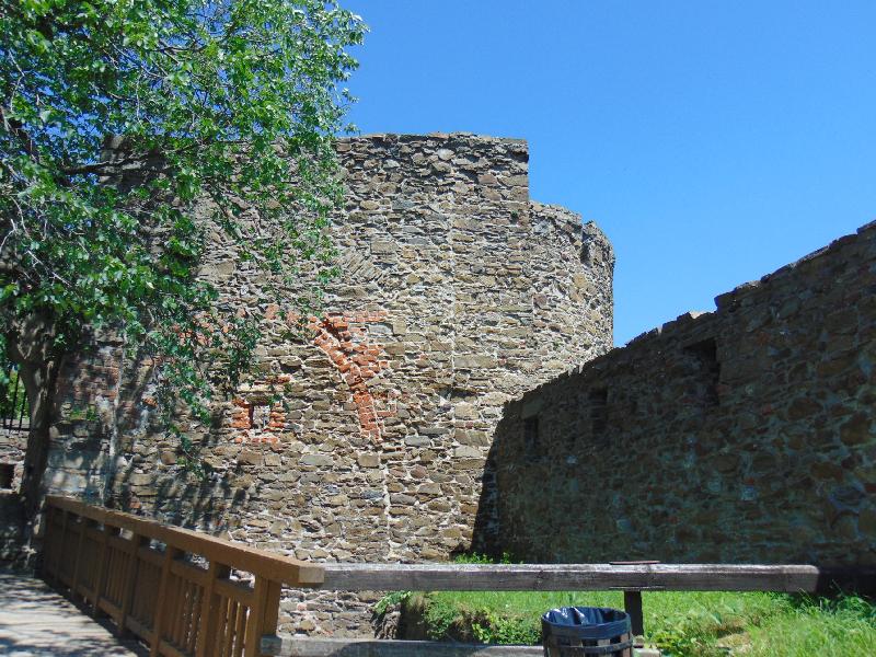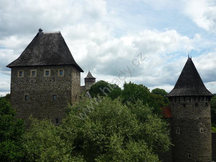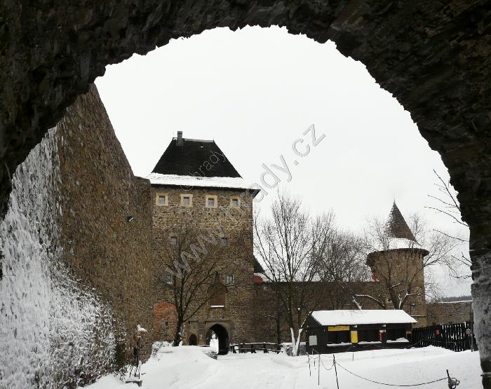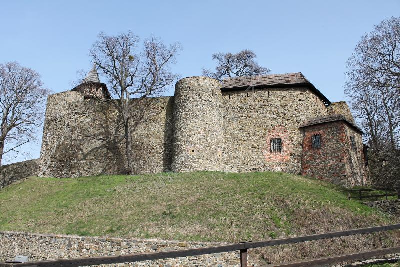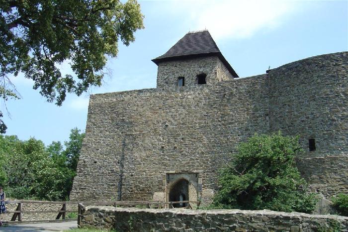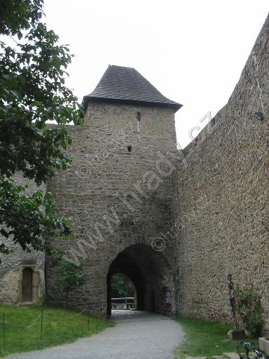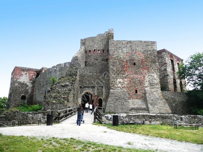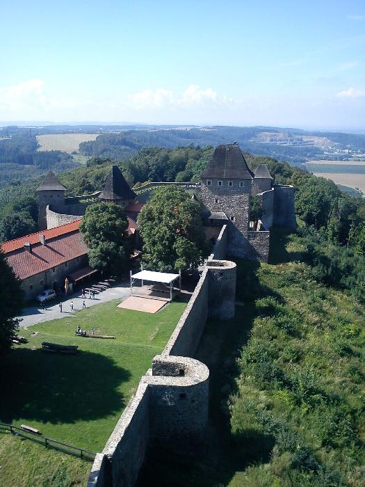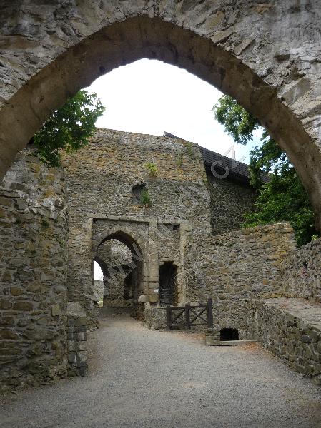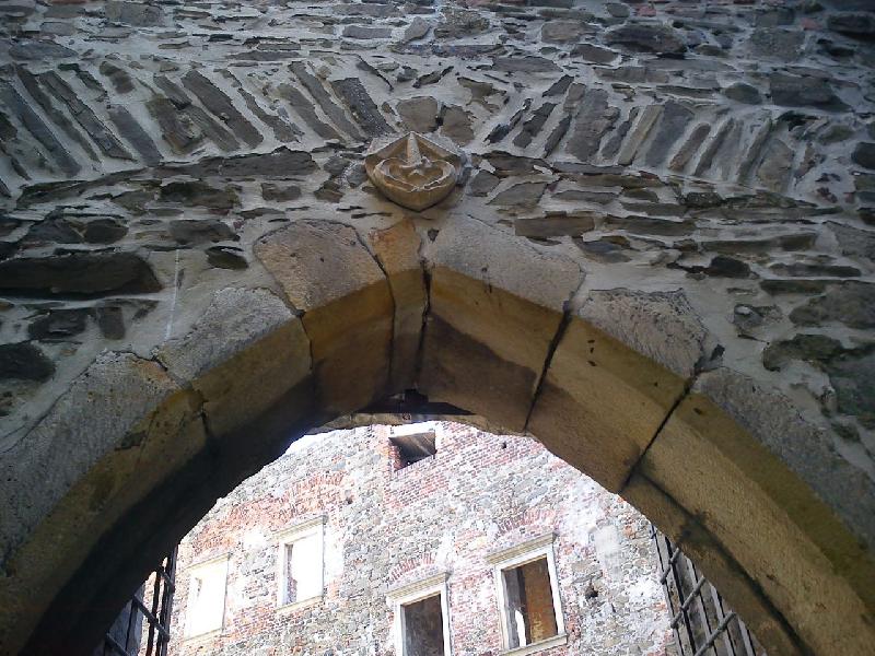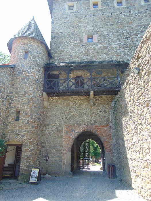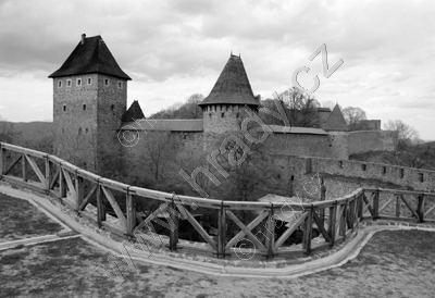 Pohled na nádvorní, jižní, fasádu severního paláce jádra hradu z 5. nádvoříá nejstarší gotickou fázi paláce z dob založení hradu.