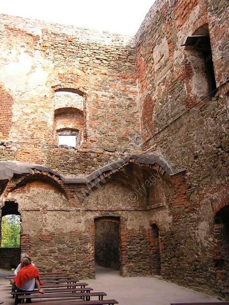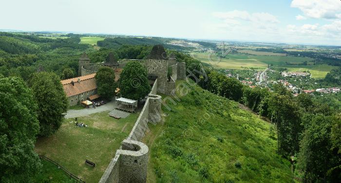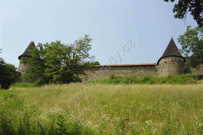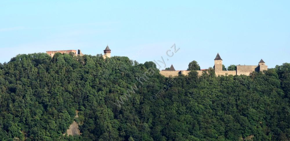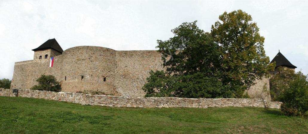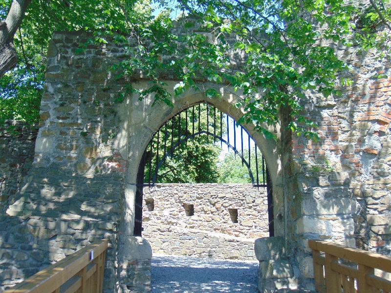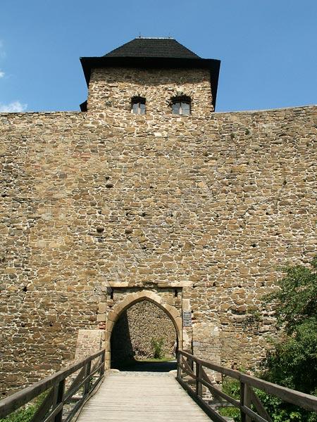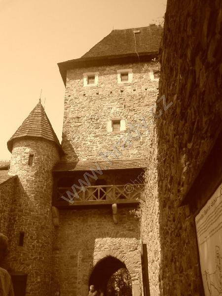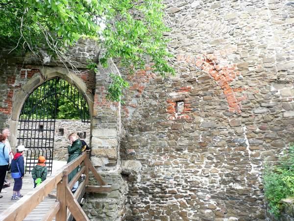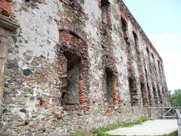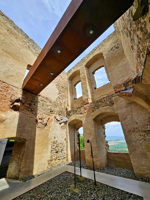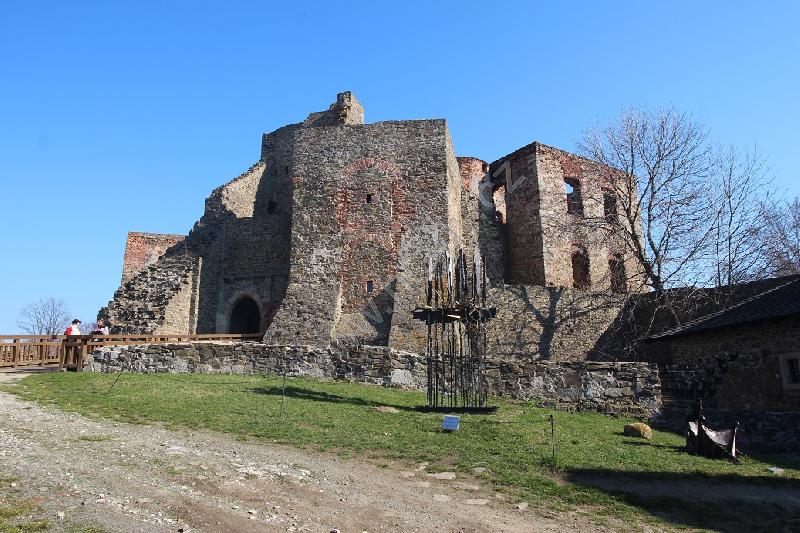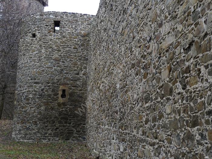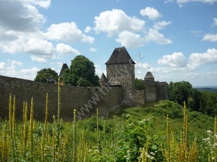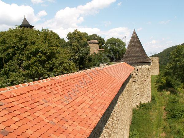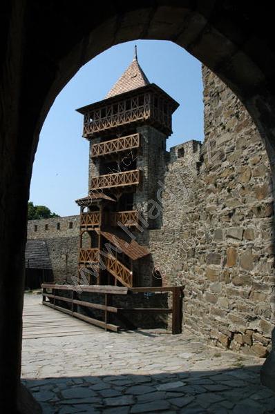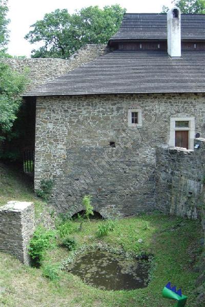 Pohled na nádvorní, jižní, fasádu severního paláce jádra hradu z 5. nádvoříá nejstarší gotickou fázi paláce z dob založení hradu.