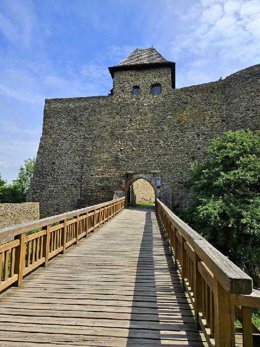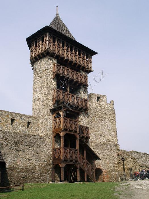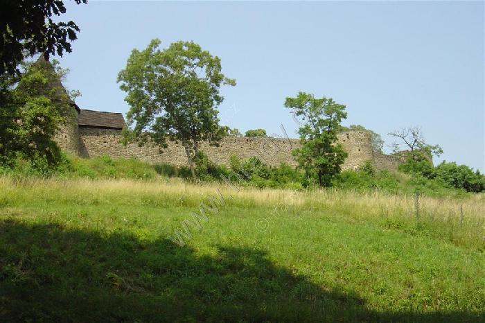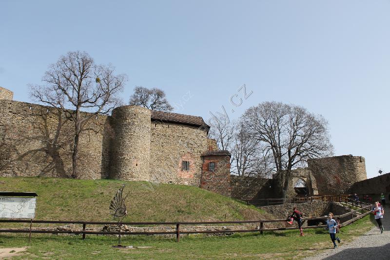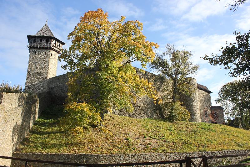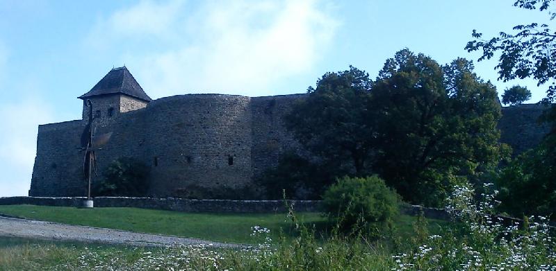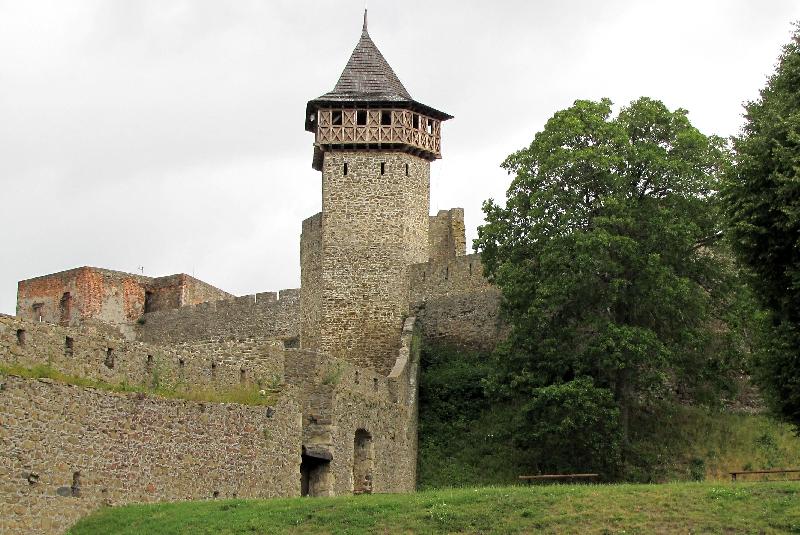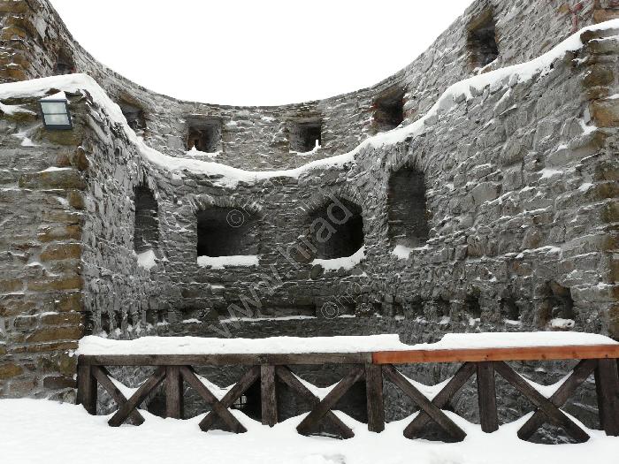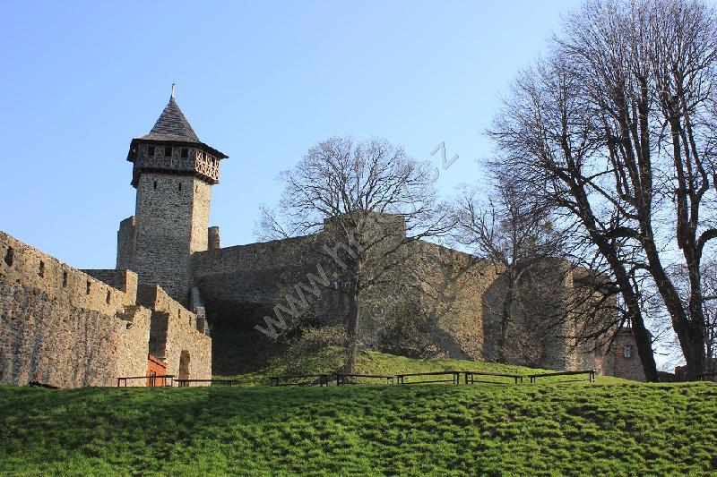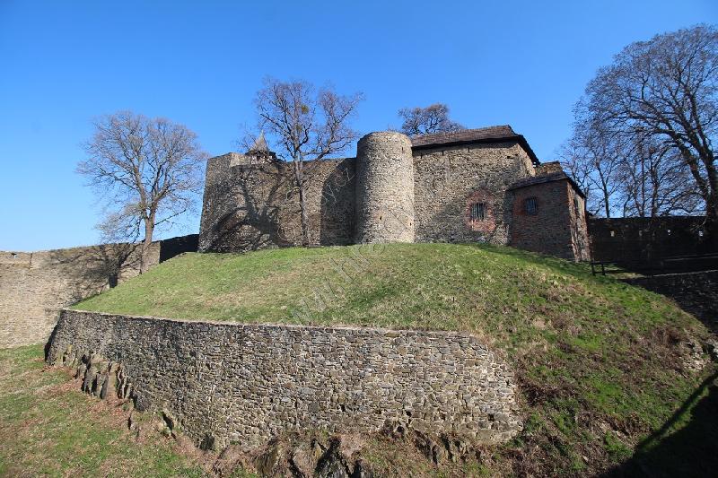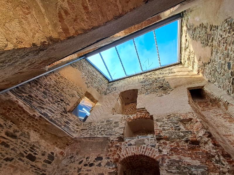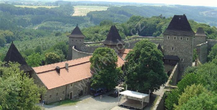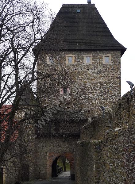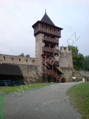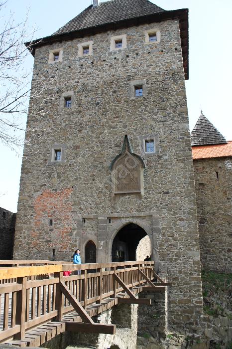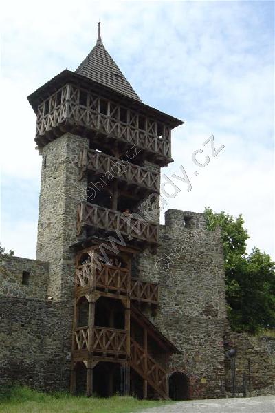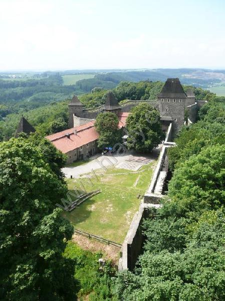 Pohled na nádvorní, jižní, fasádu severního paláce jádra hradu z 5. nádvoříá nejstarší gotickou fázi paláce z dob založení hradu.