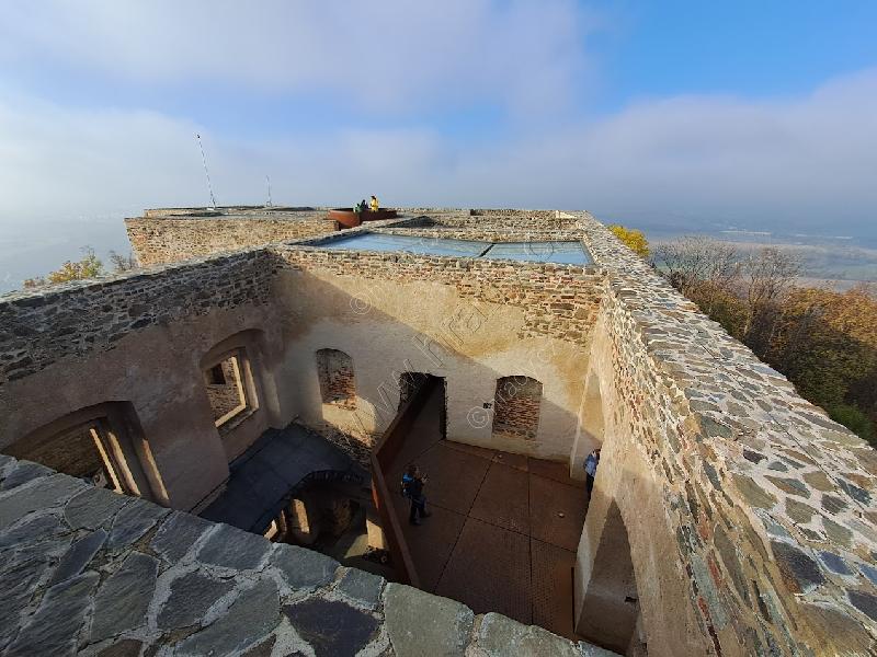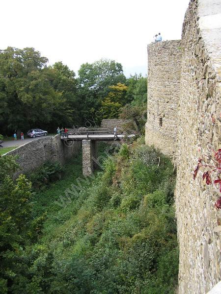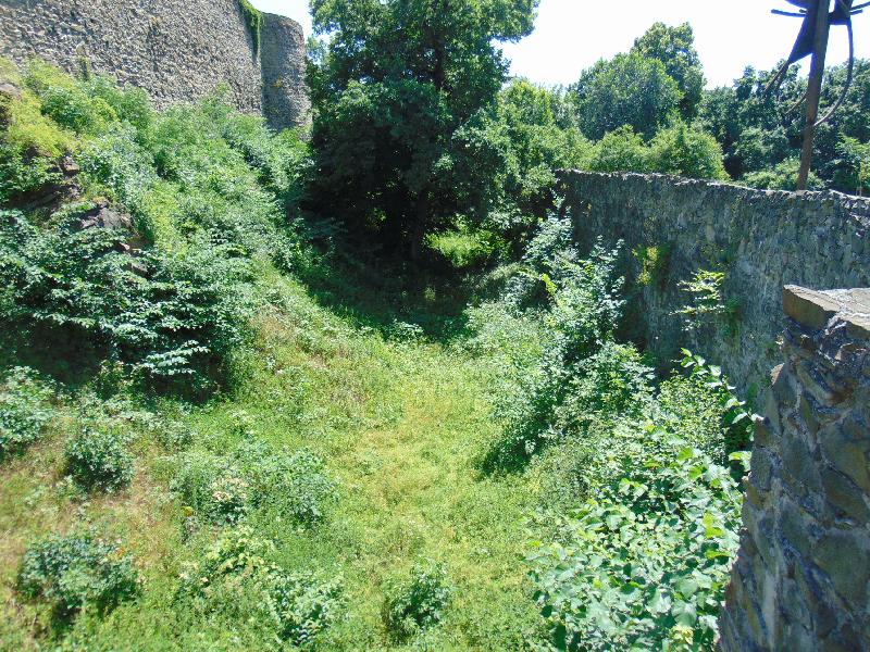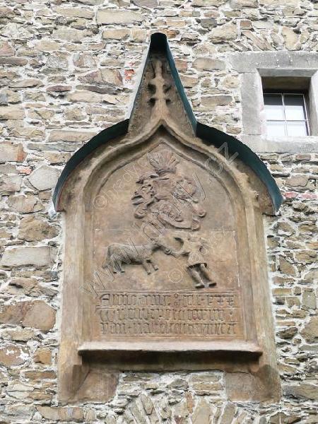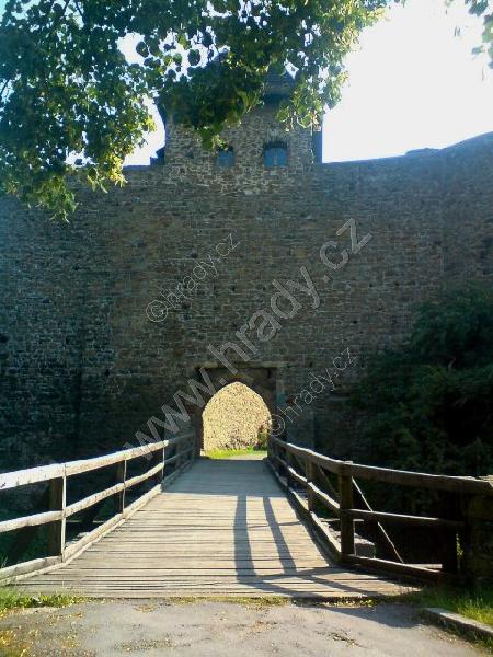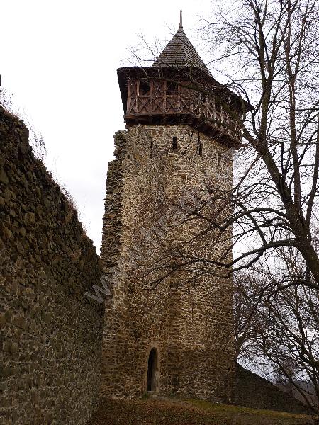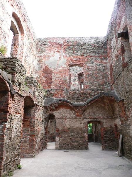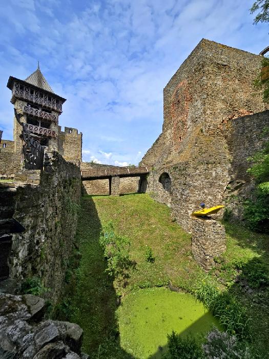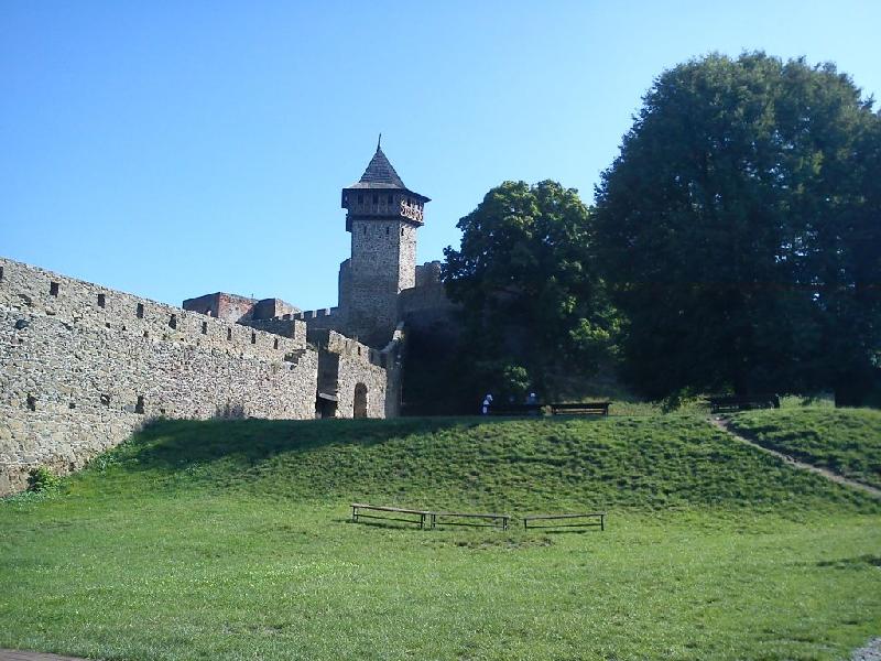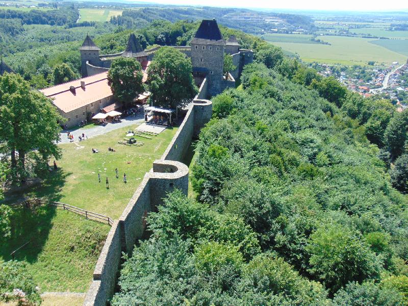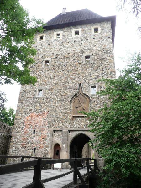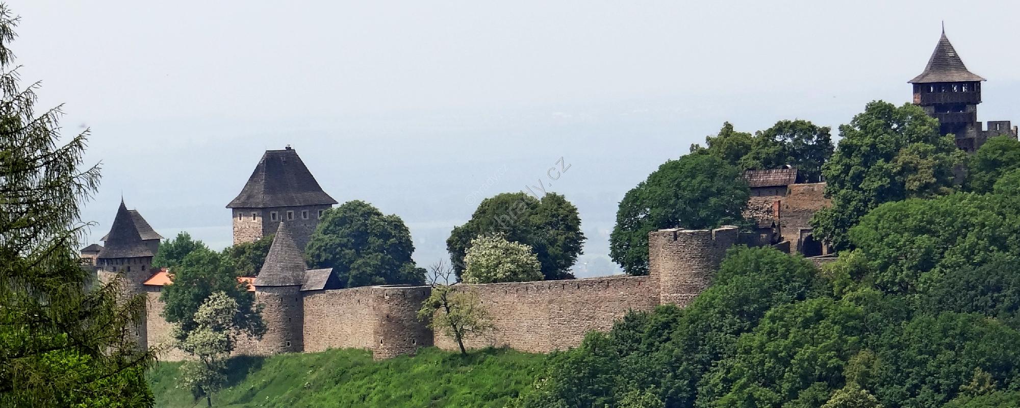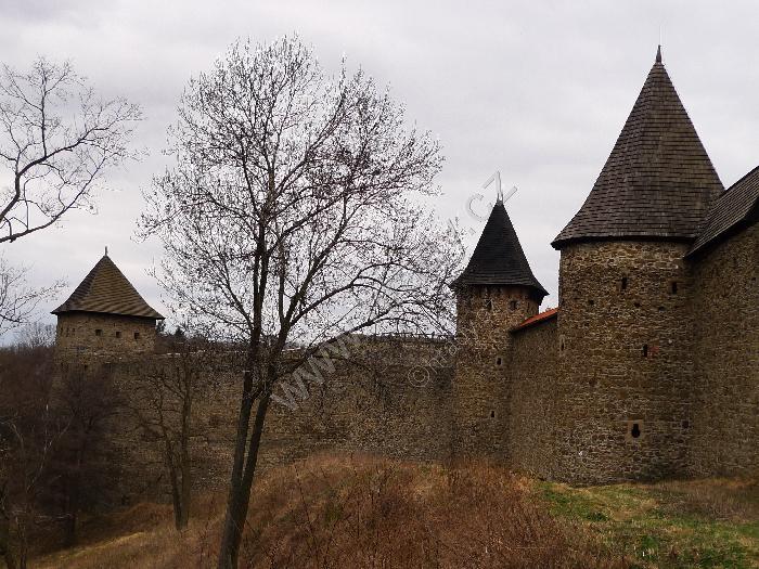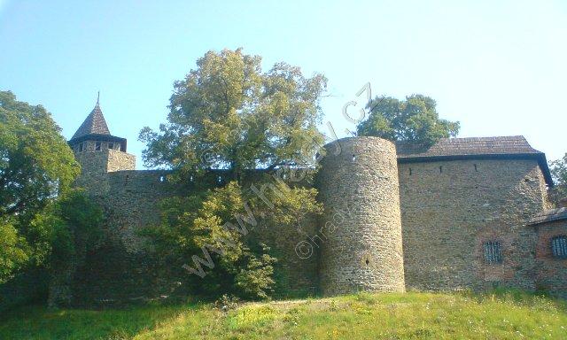 Pohled na nádvorní, jižní, fasádu severního paláce jádra hradu z 5. nádvoříá nejstarší gotickou fázi paláce z dob založení hradu.