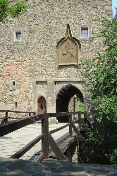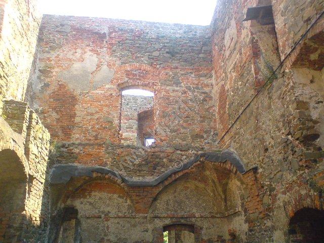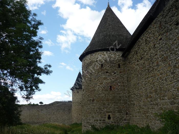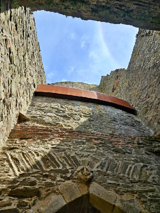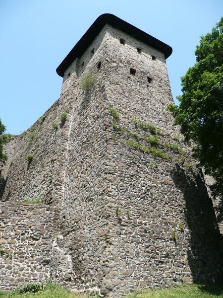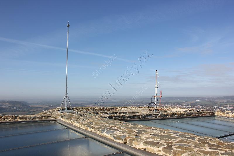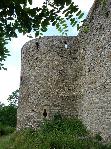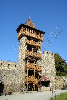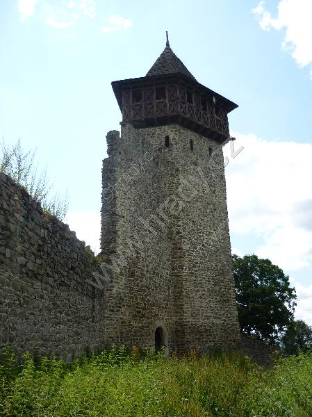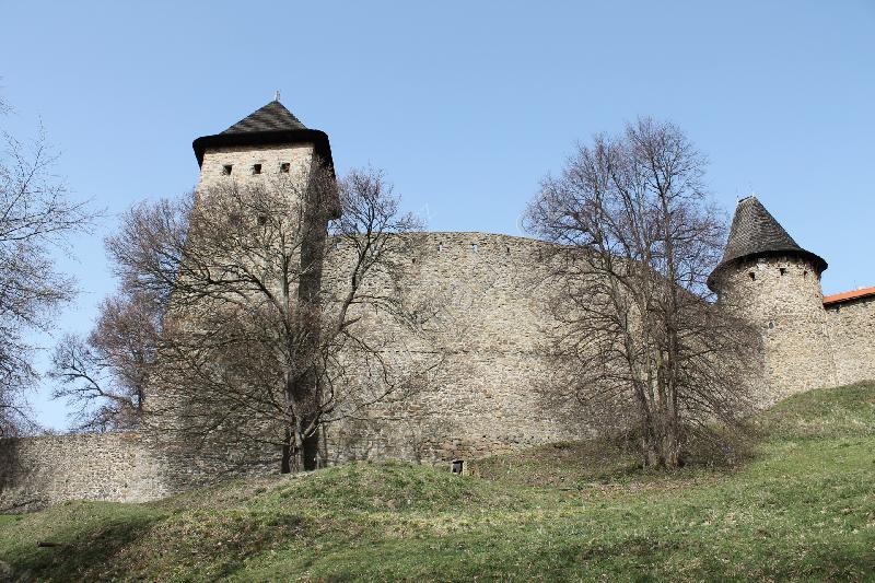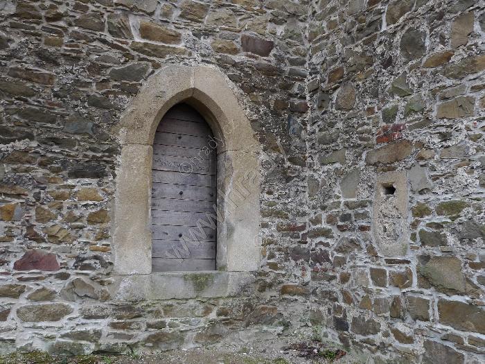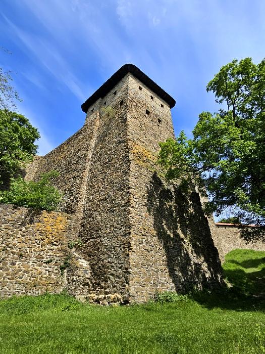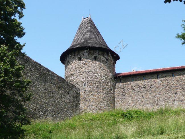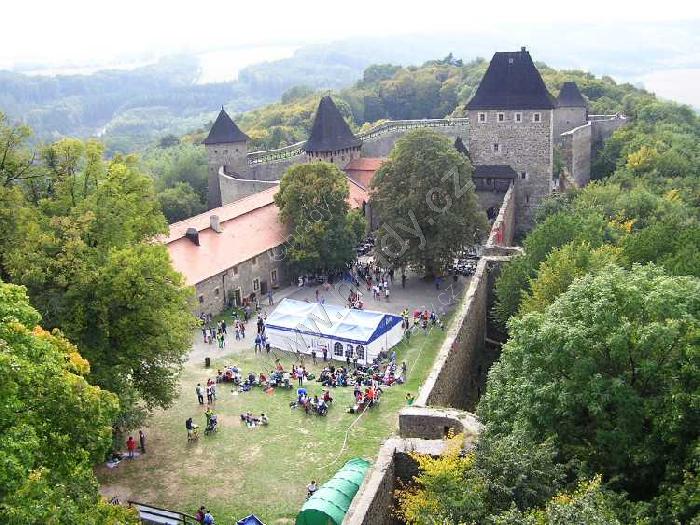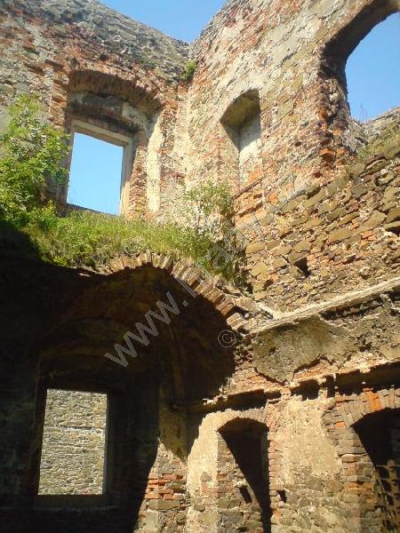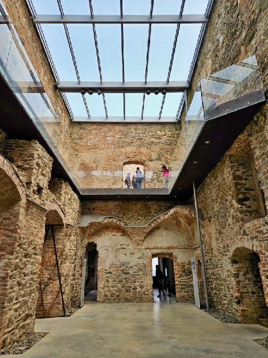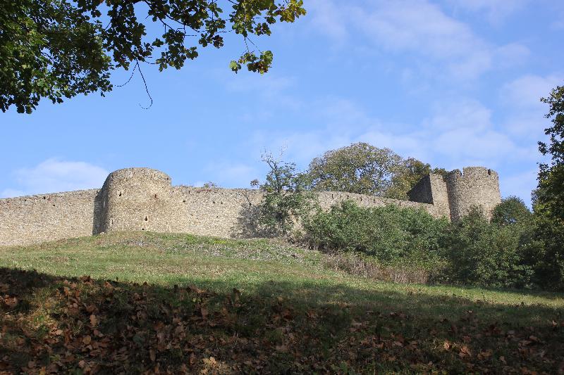 Pohled na nádvorní, jižní, fasádu severního paláce jádra hradu z 5. nádvoříá nejstarší gotickou fázi paláce z dob založení hradu.