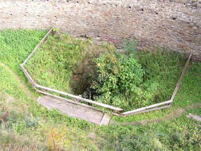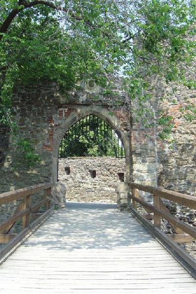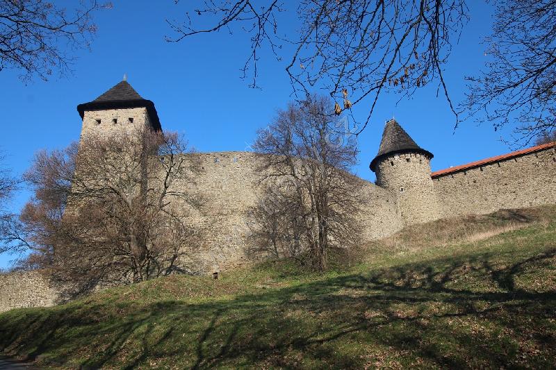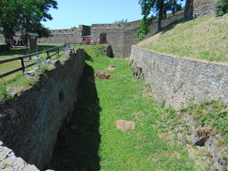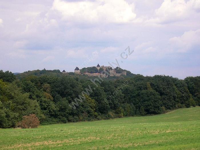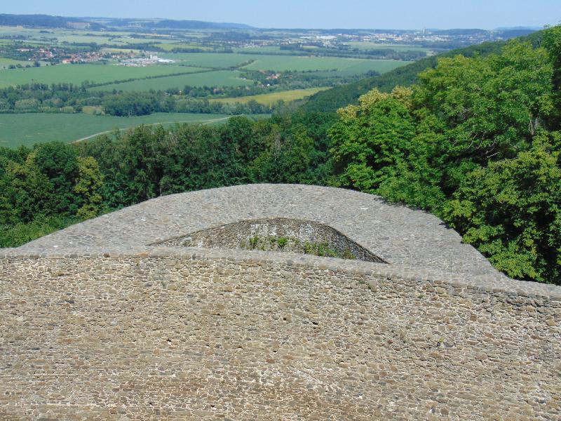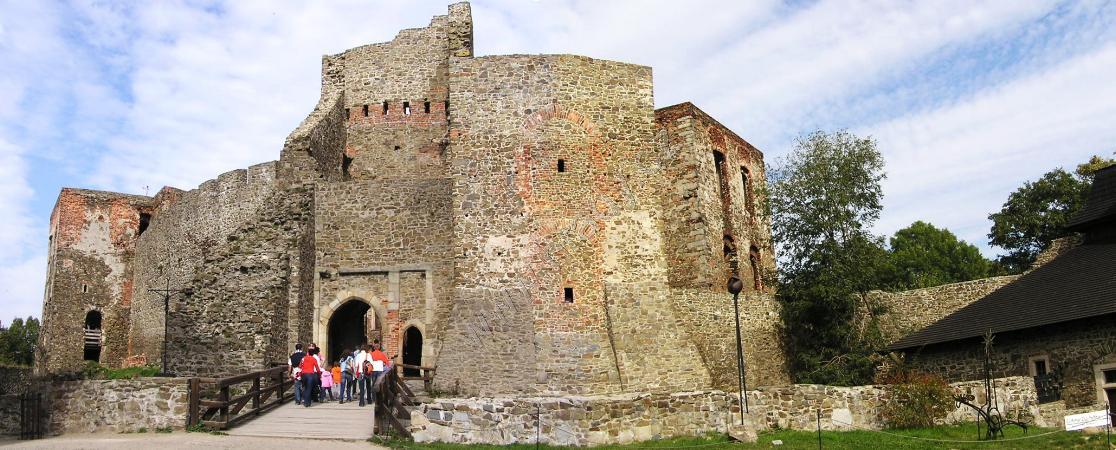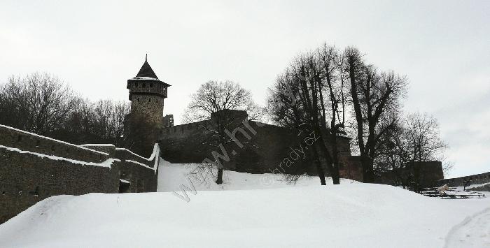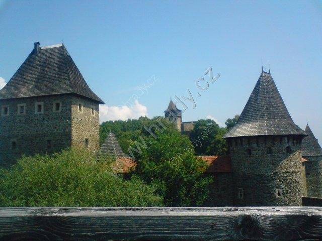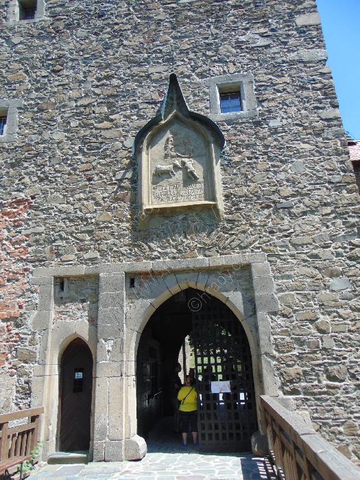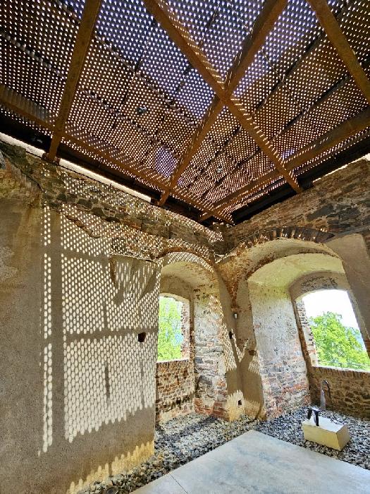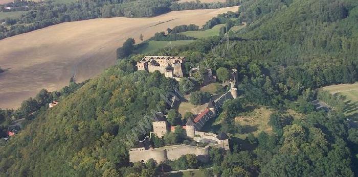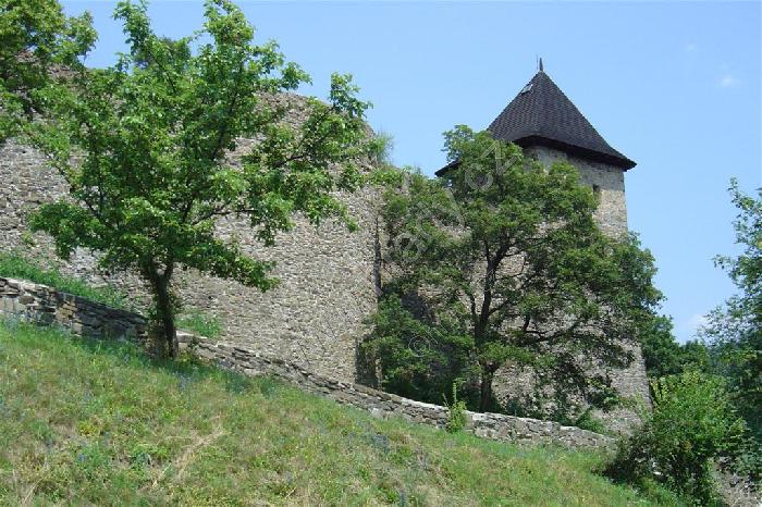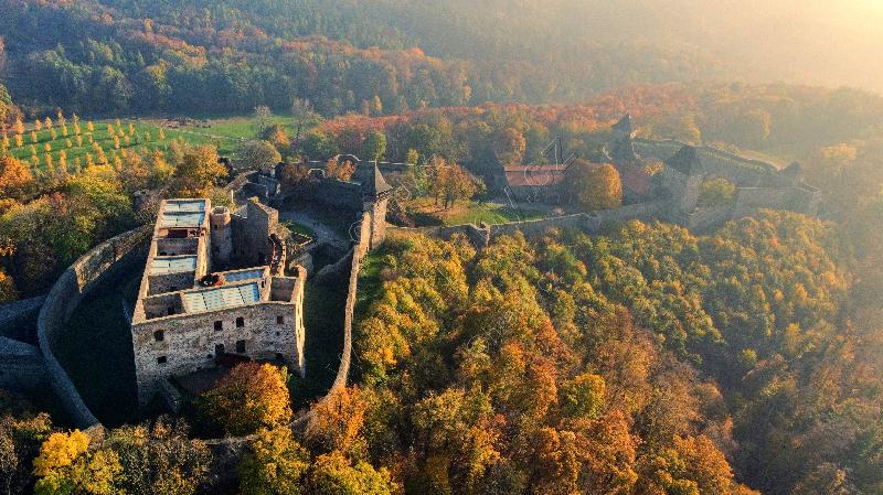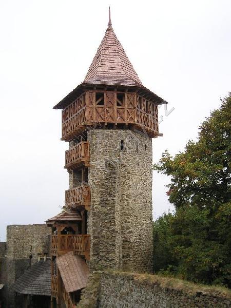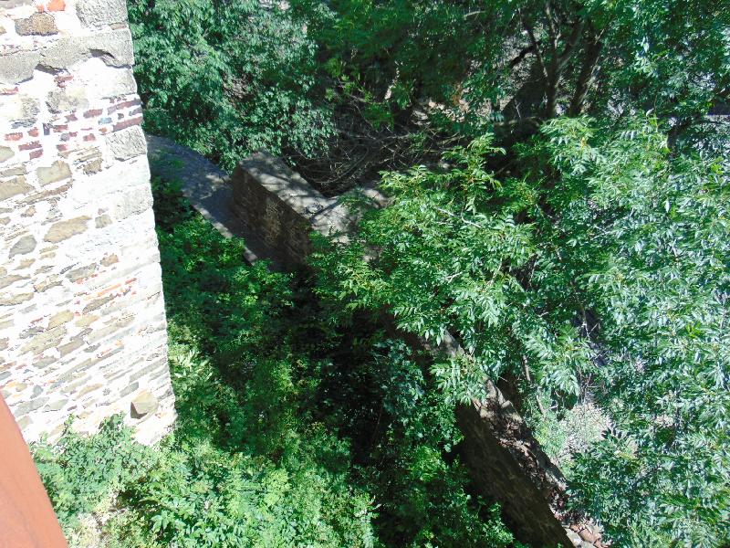 Pohled na nádvorní, jižní, fasádu severního paláce jádra hradu z 5. nádvoříá nejstarší gotickou fázi paláce z dob založení hradu.