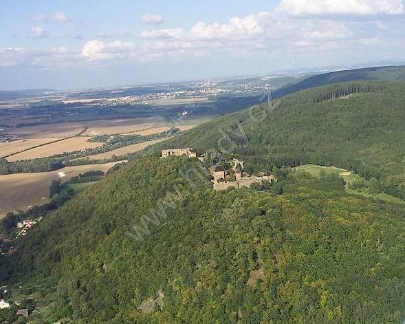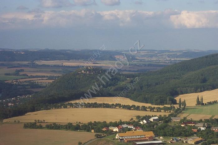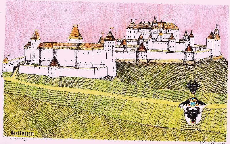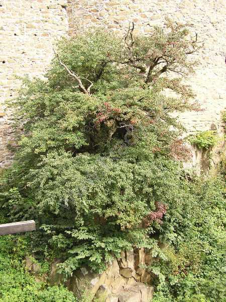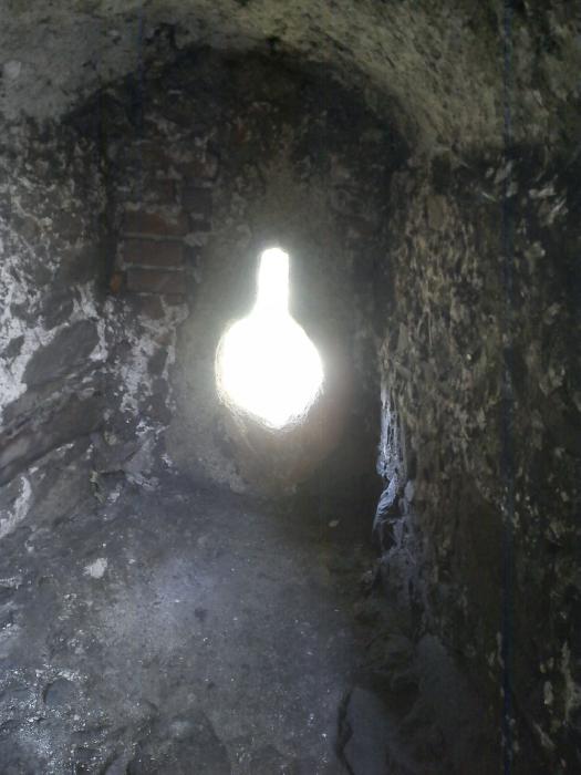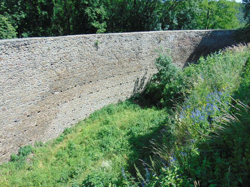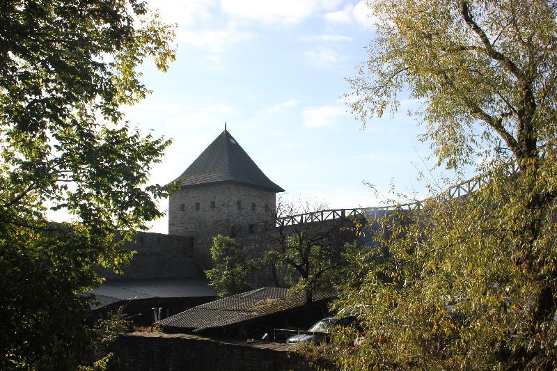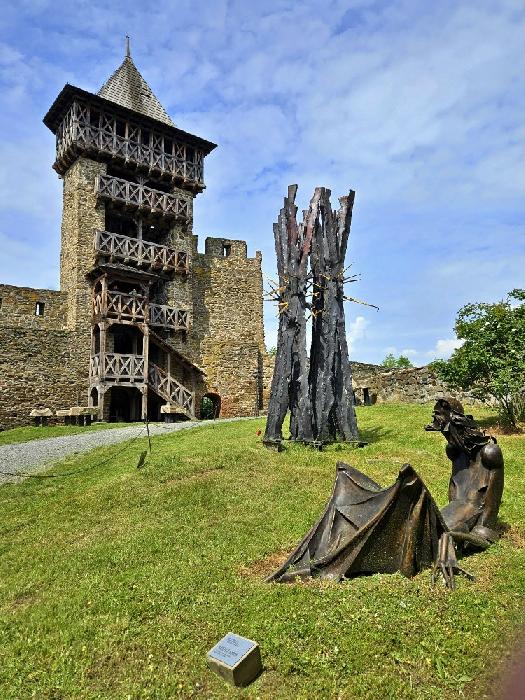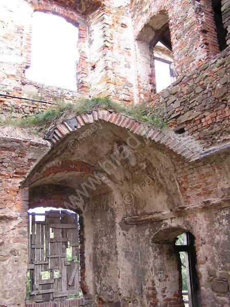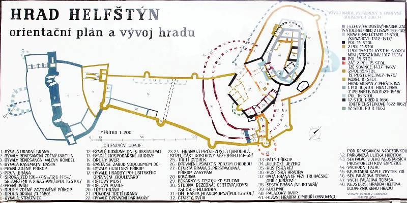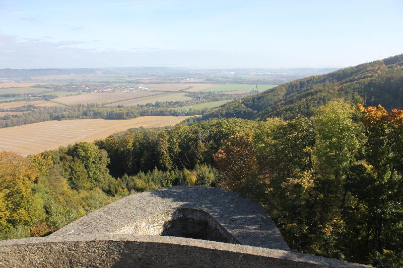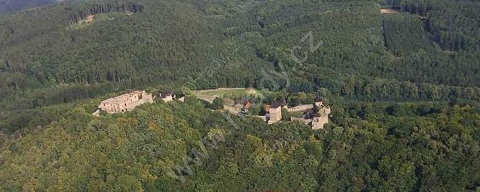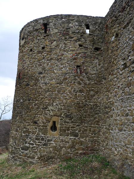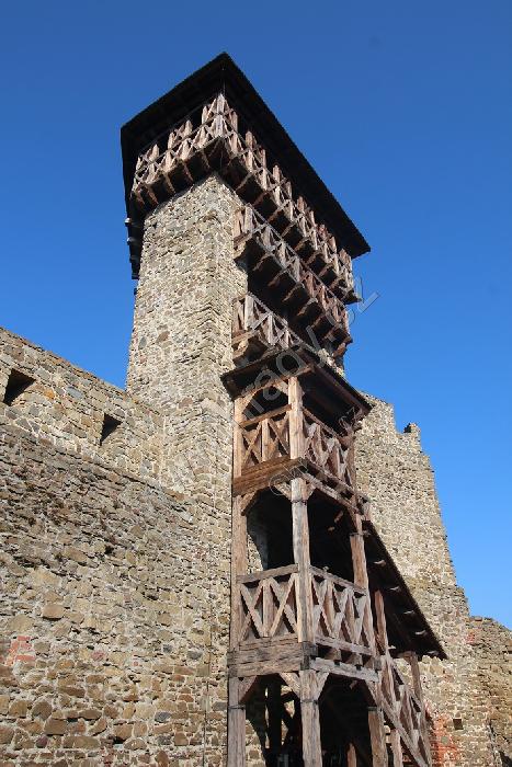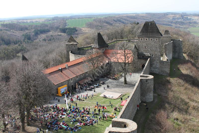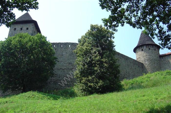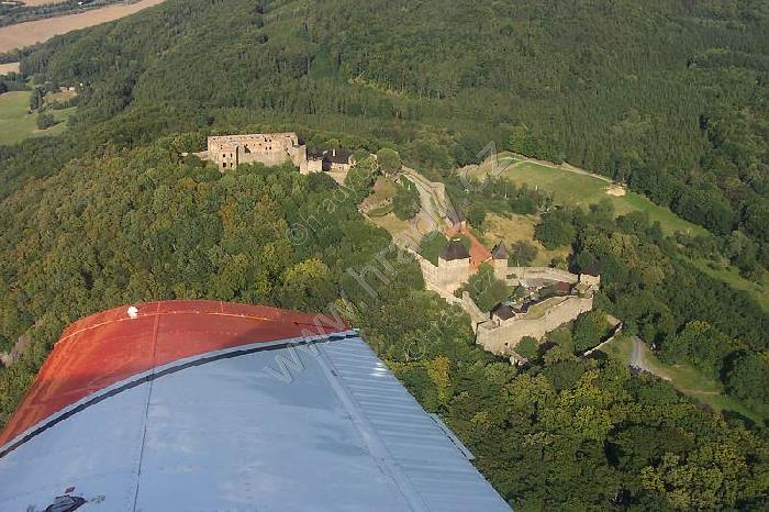 Pohled na nádvorní, jižní, fasádu severního paláce jádra hradu z 5. nádvoříá nejstarší gotickou fázi paláce z dob založení hradu.