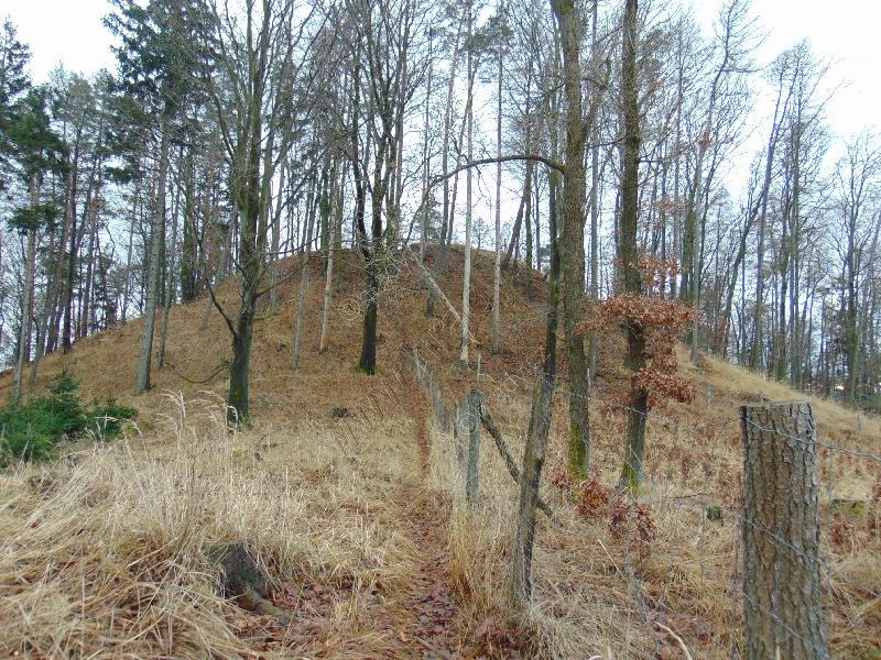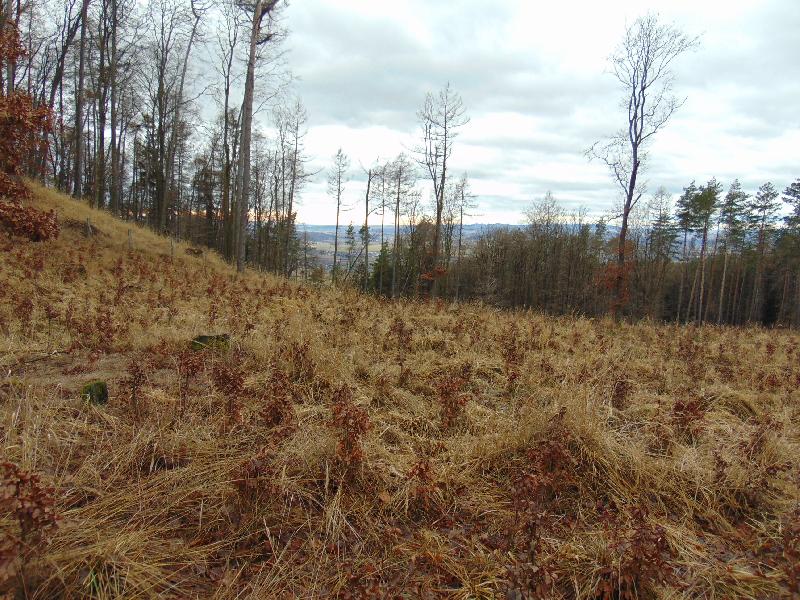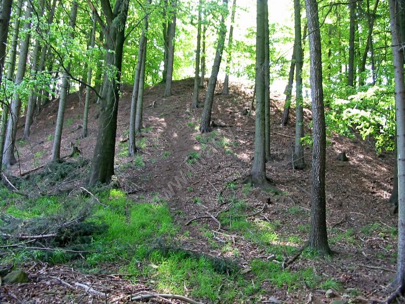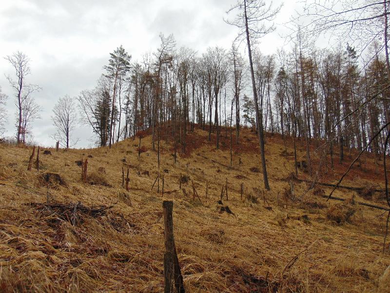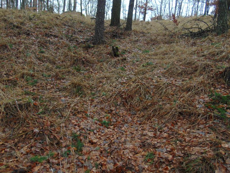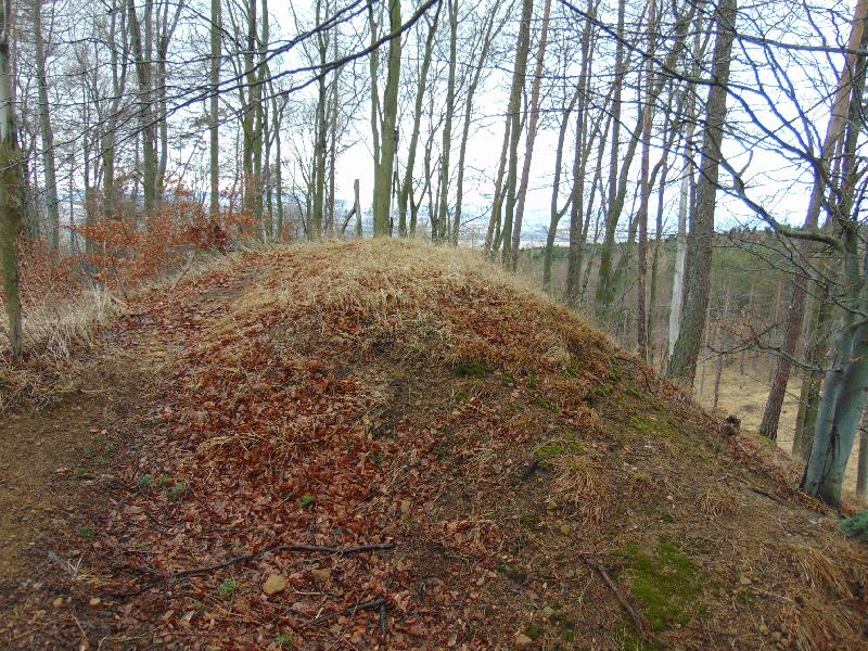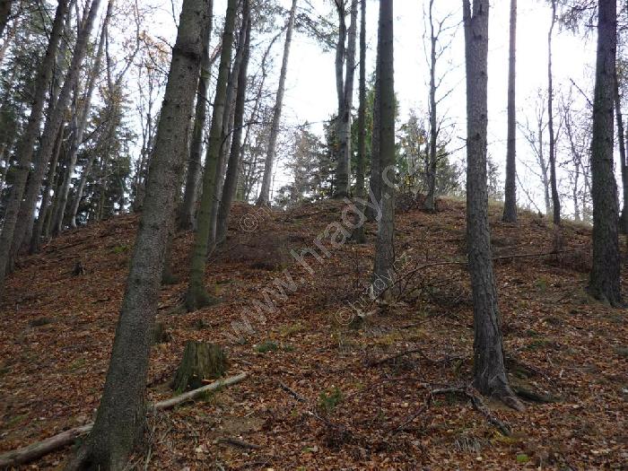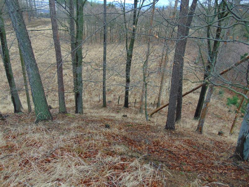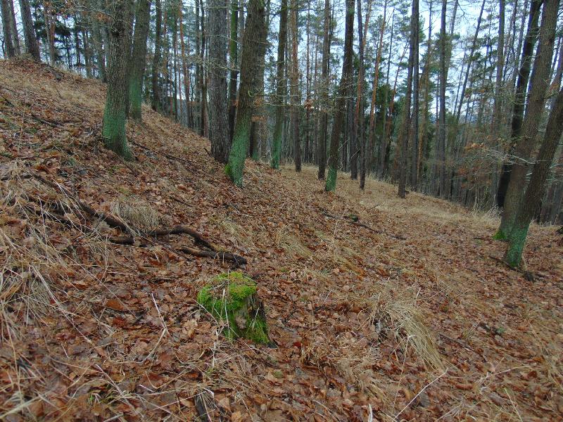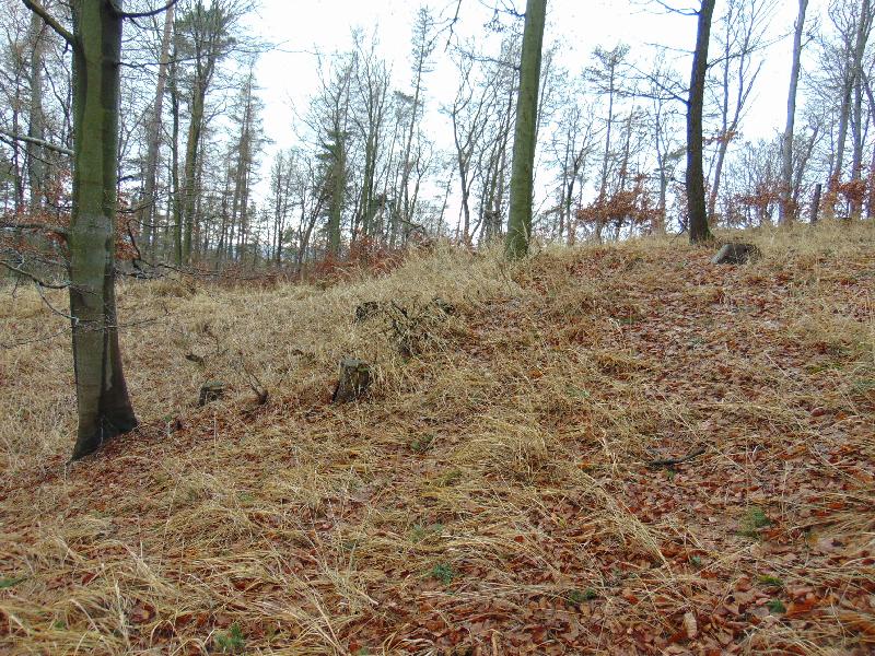 Plochý hřbet pod sev. svahem, ale bez náznaku možného valu