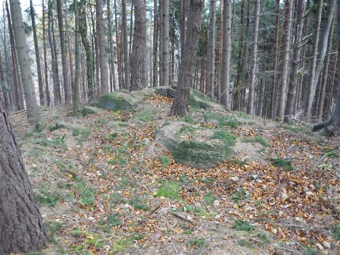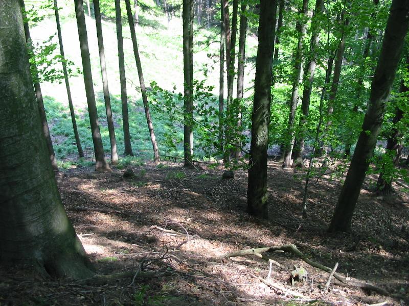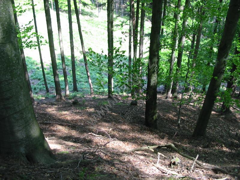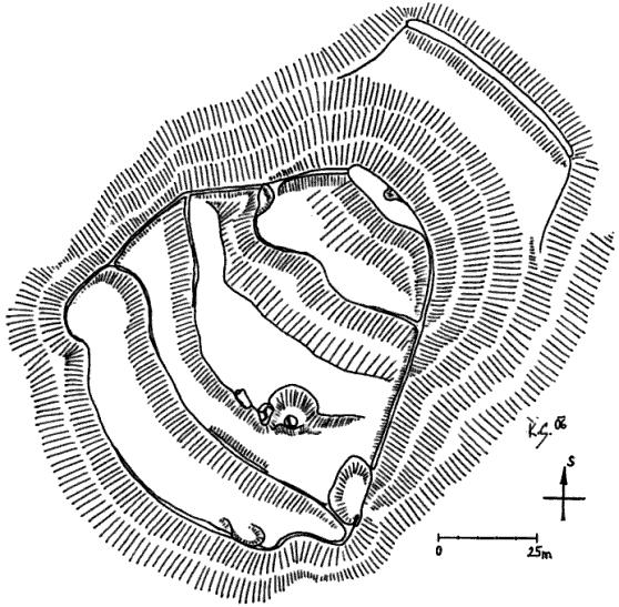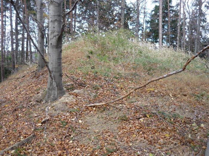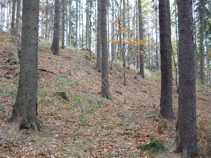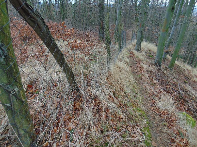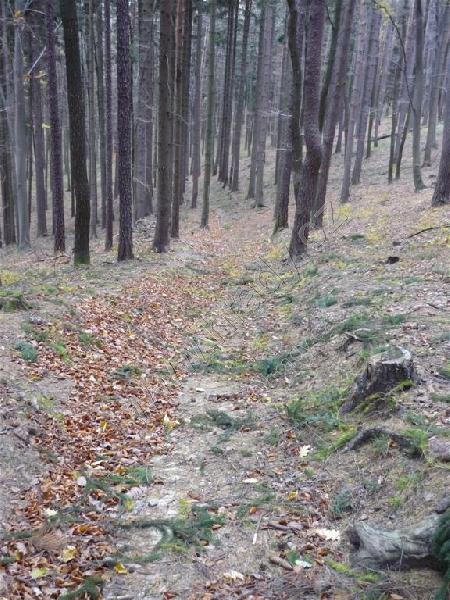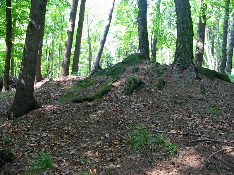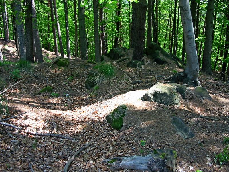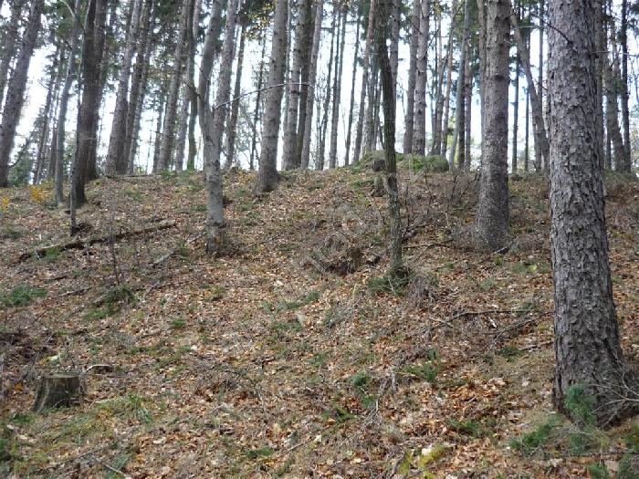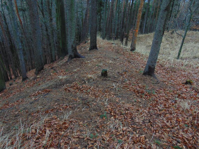 Plochý hřbet pod sev. svahem, ale bez náznaku možného valu