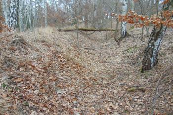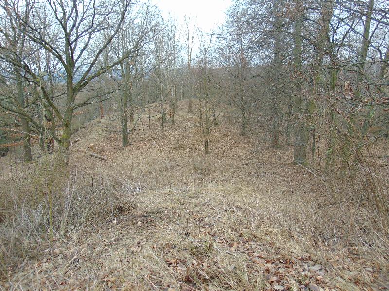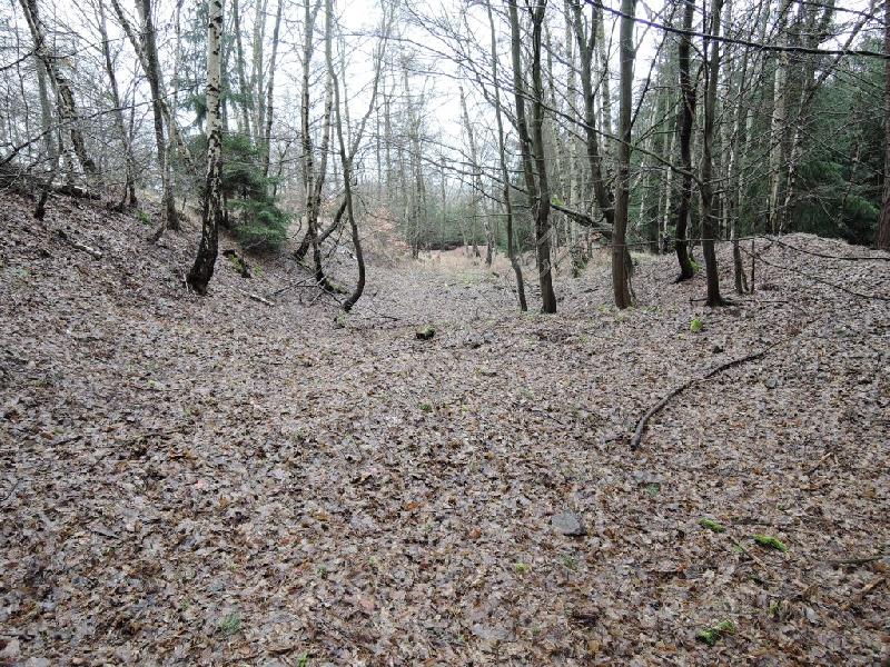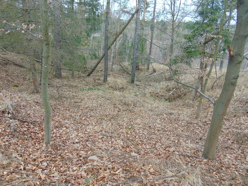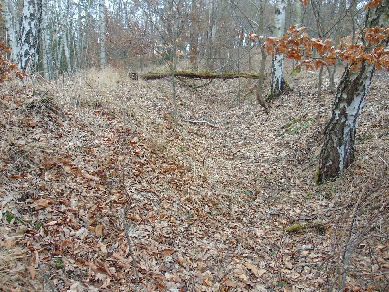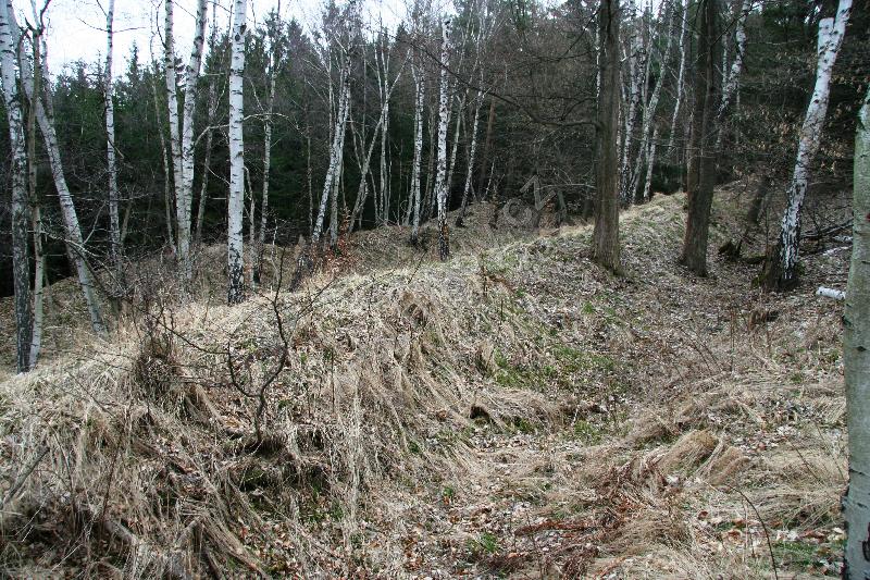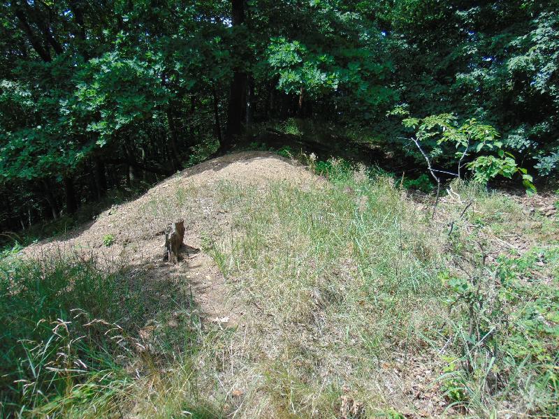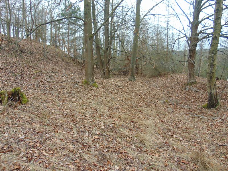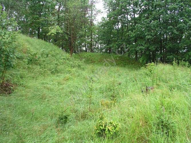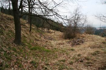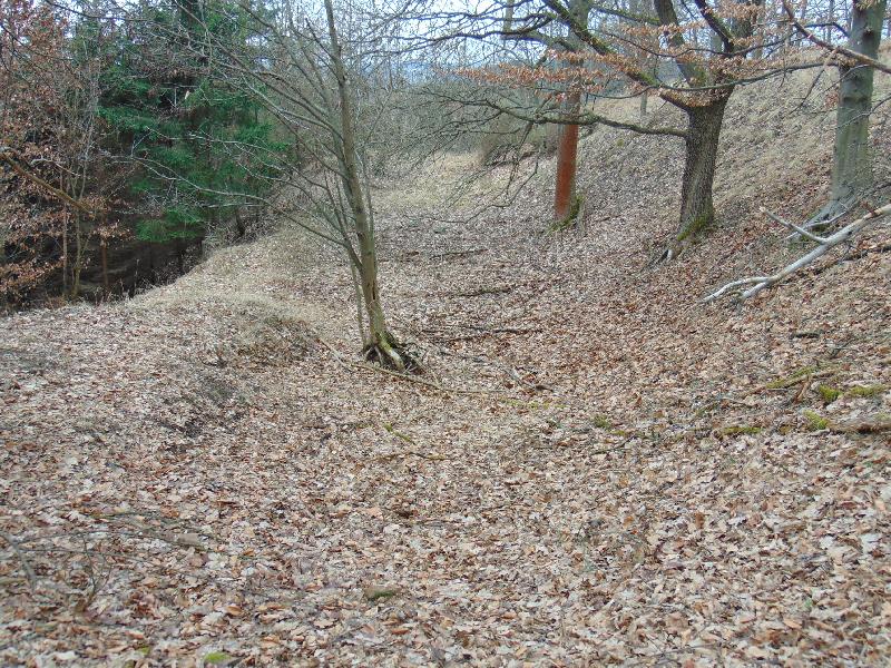 Východní část šíjového příkopu s výsypkou materiálu získaného těžbou