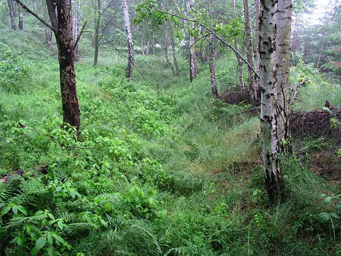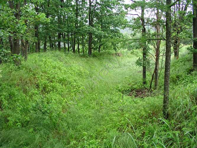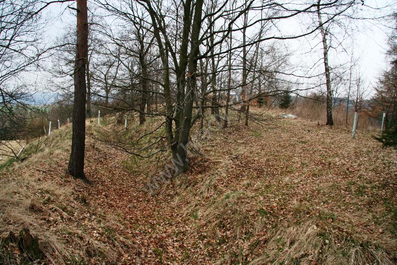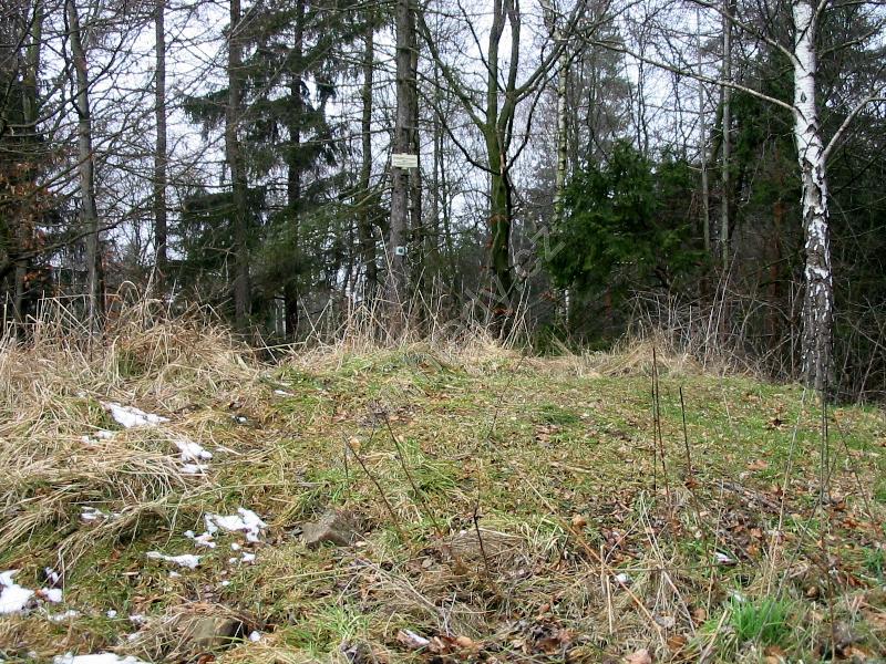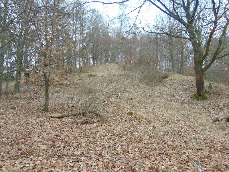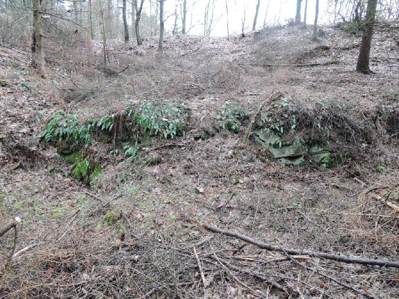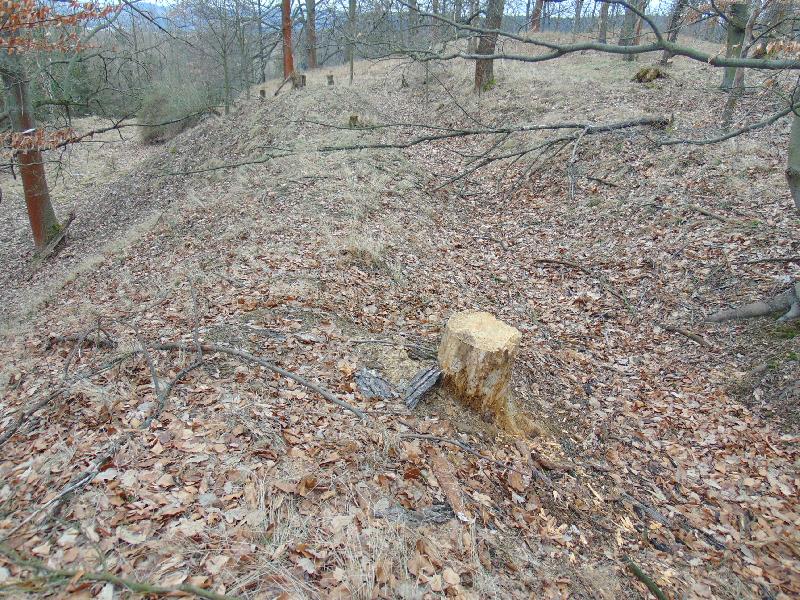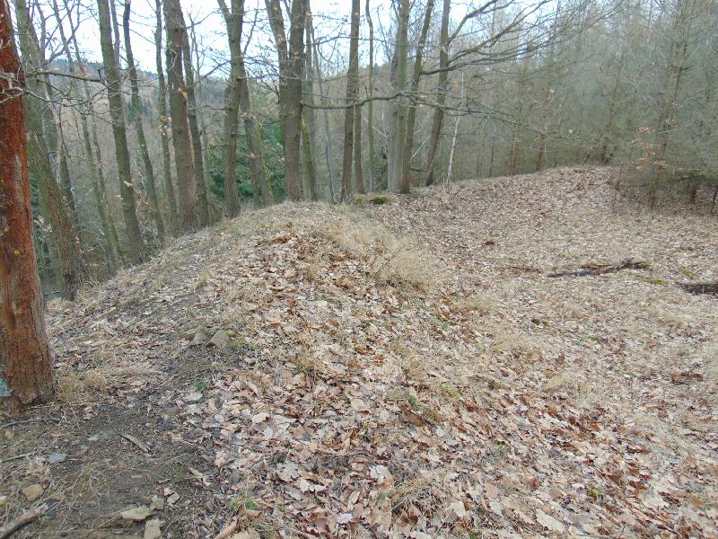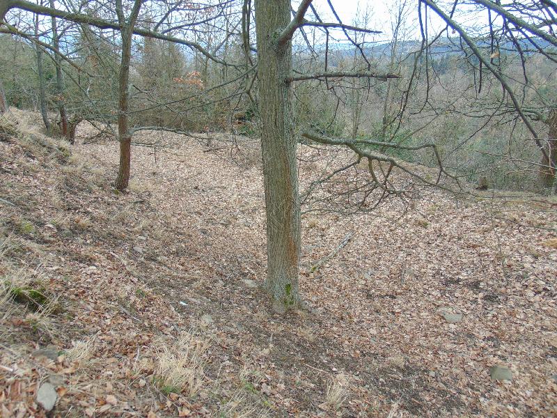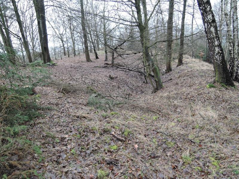 Východní část šíjového příkopu s výsypkou materiálu získaného těžbou