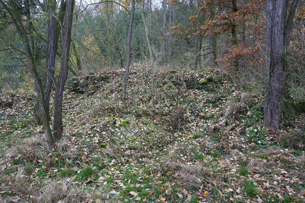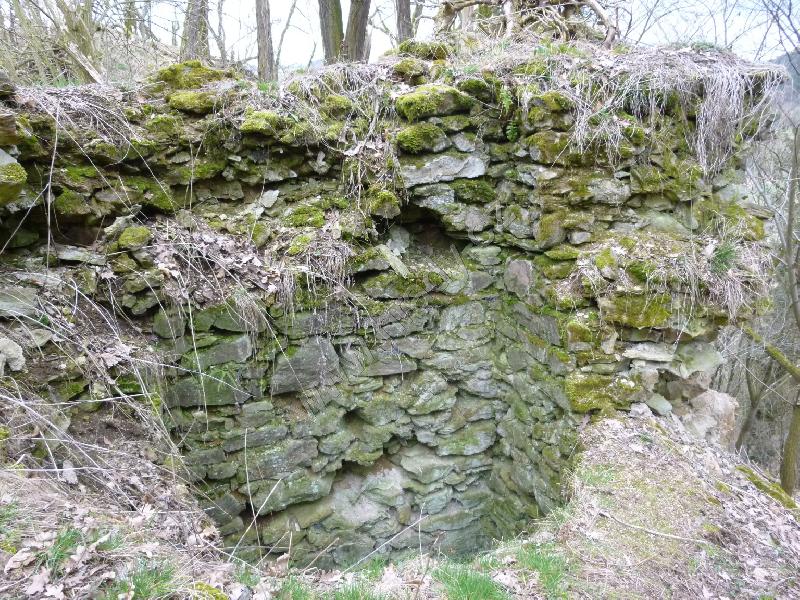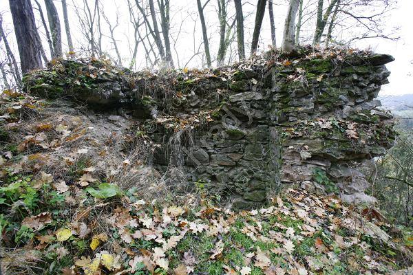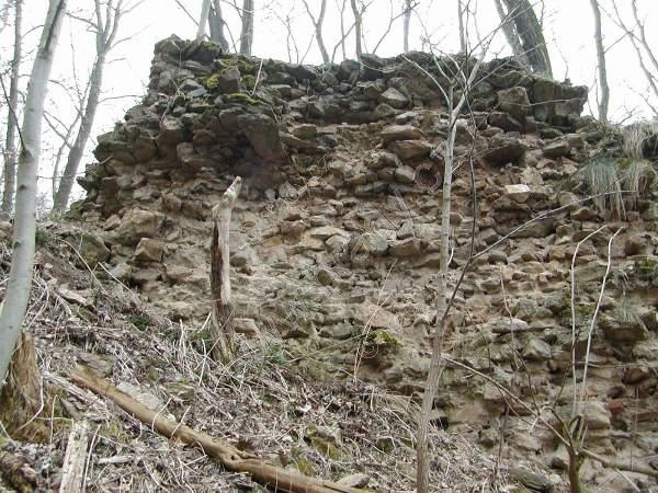 Zbytek čelní půlválcové věže je dnes nejvýraznějším pozůstatkem hrádku