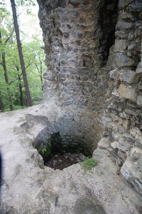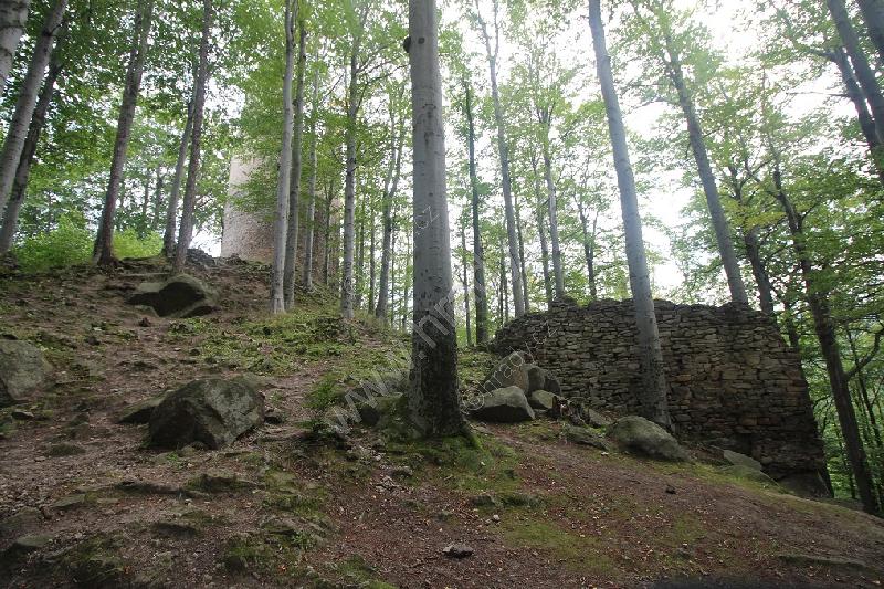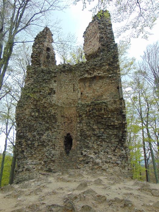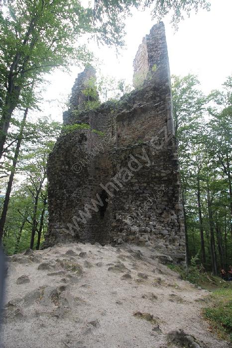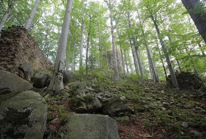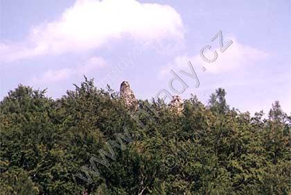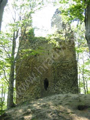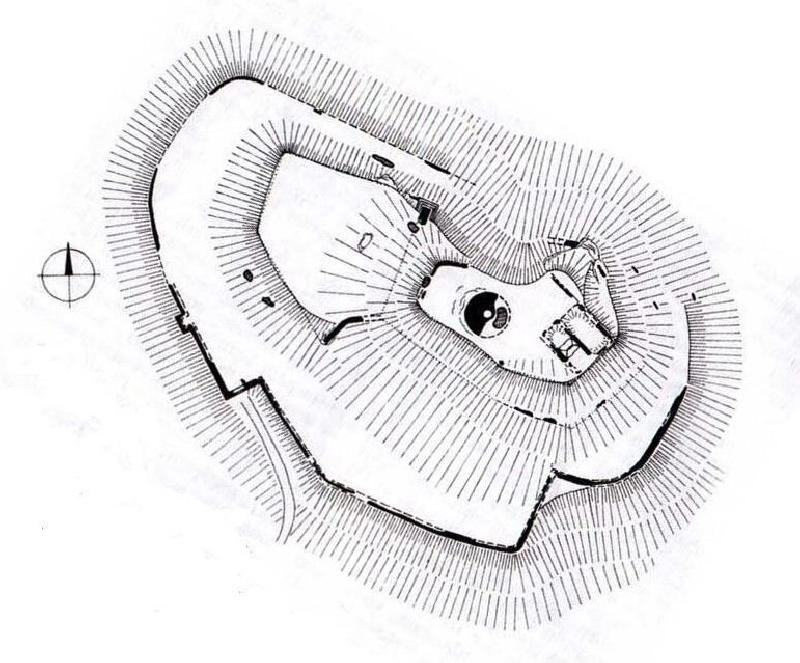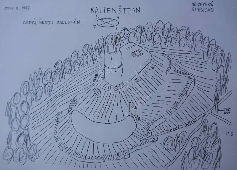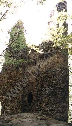 Ptačí perspektiva hradní zříceniny v roce 1995.