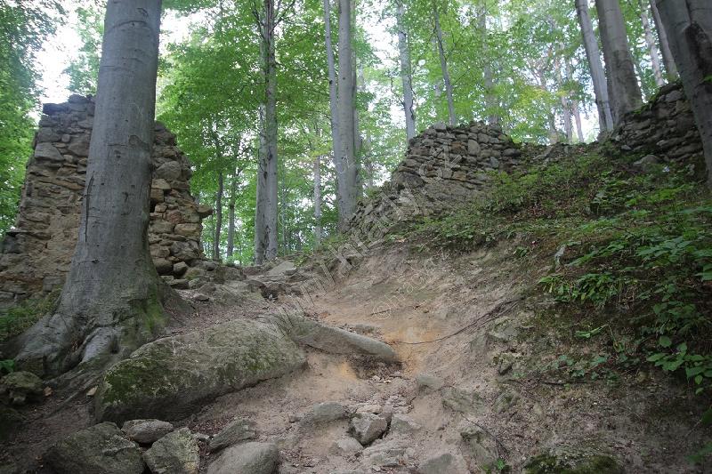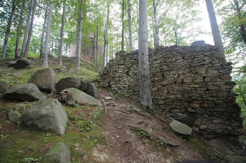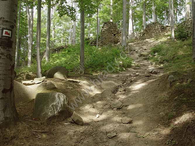 Pilíř vstupní brány do jádra vetknutý do sev parkánu