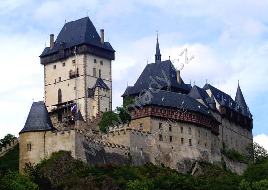 Vyobrazený hrad Karlštejn, na jedné z prvorepublikových známek.