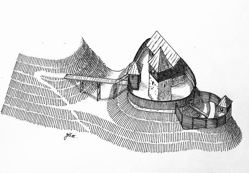 Hypotetická rekonstrukce hrádku dle J. P. Štěpánka