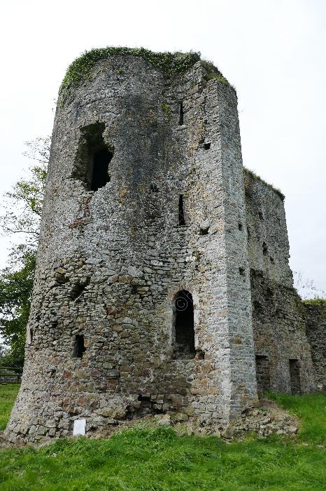 Pohled z vnitřního prostoru hradu na jižní věž a jihozápadní kurtinu. Zaniklá jihovýchodní kurtina směřovala od věže ke kameře. Její otisk na věži byl zastřen při novověkých opravách průčelí věže.