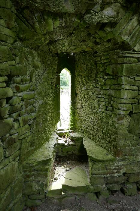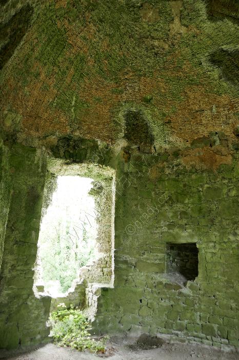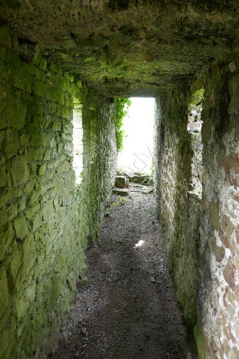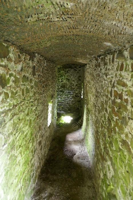 Chodba v síle zdi jihozápadní kurtiny na úrovni 2. patra jižní věže. Na konci chodby byla latrína. Strop má otisky košatiny (15. stol).