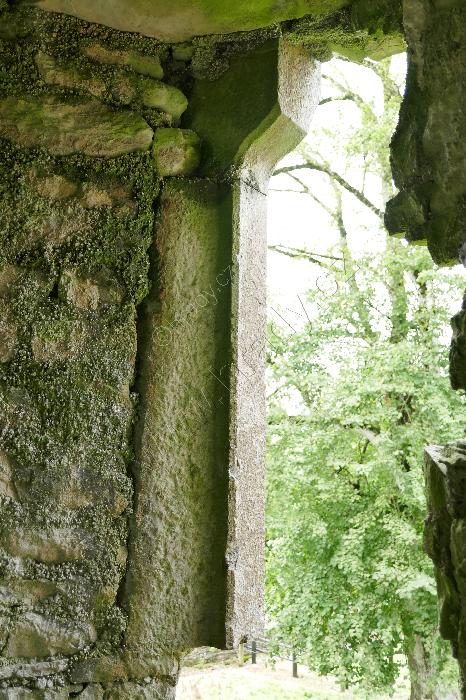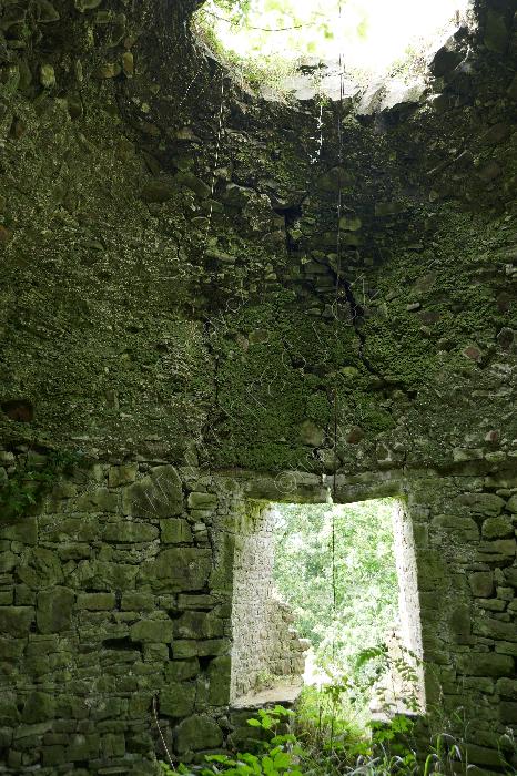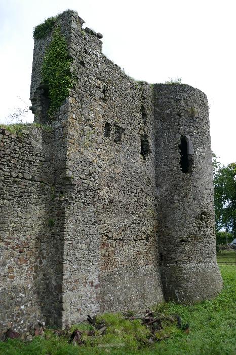 Jižní roh hradu. Je dobře patrný havarijní stav zdiva věže nalevo v přízemí. Uvolněné zdivo již neunese vlastní váhu, natož věž.