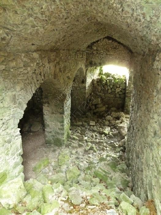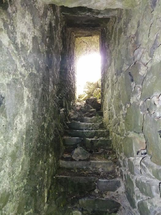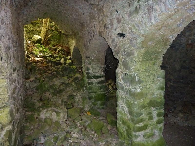 Jižní schodiště v síle zdi donjonu bylo v 15. stol. zablokováno komínem z krbu v přízemí.