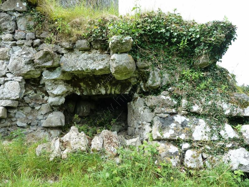 Říční (východní) strana donjonu. Napravo je v hradbě otvor výpadní branky.