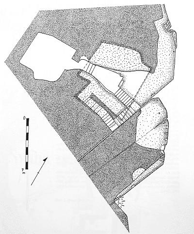 Celkový pohled na zbytky hrádku ze Šemanovického dolu