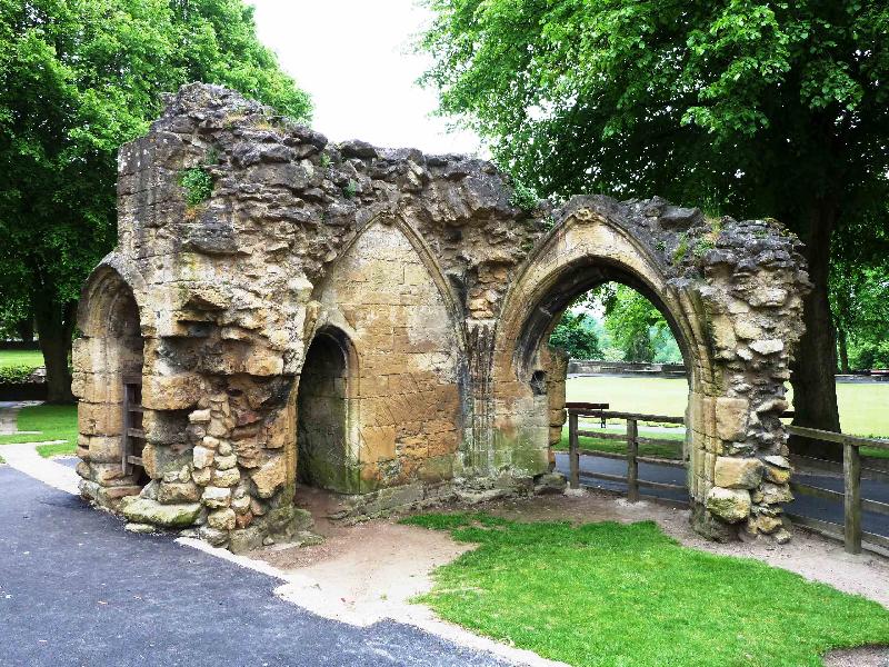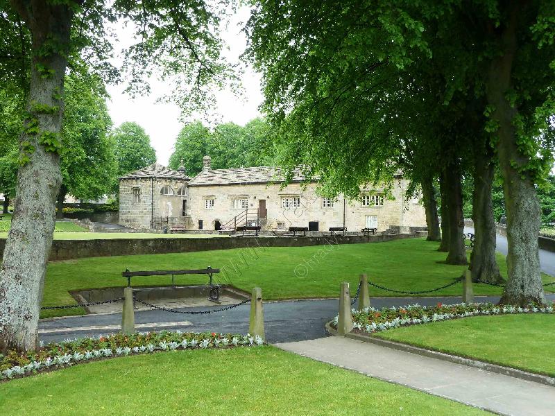Parková úprava hradního areálu. Na pozadí je tudorská budova soudu.