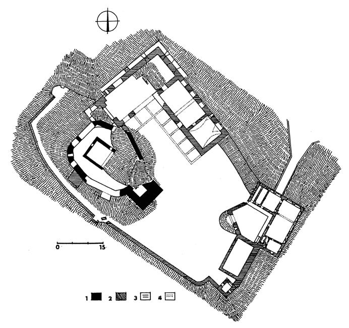 Terénní náčrt jádra s představou stavebního vývoje podle L. Svobody