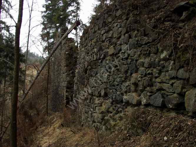 Zbytek zdi paláce a obvodové hradby hradu