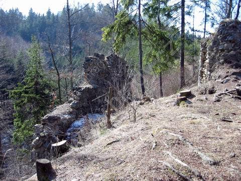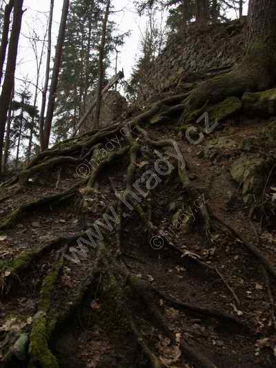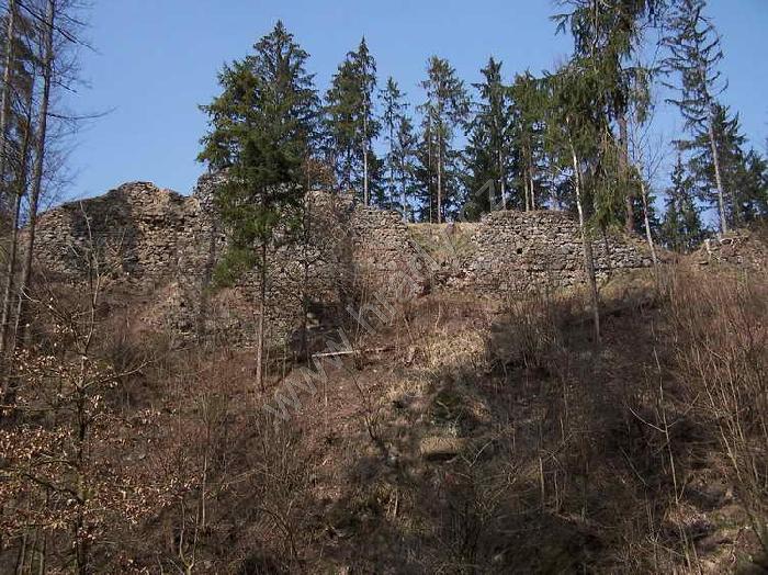pohled na zříceninu od cesty pod hradem