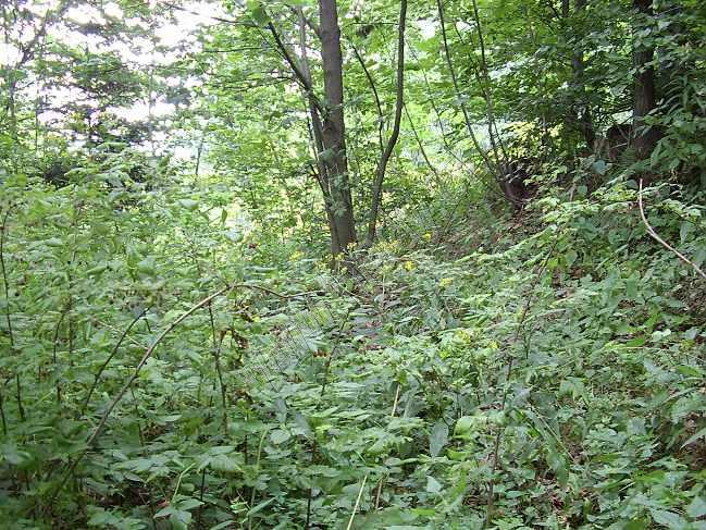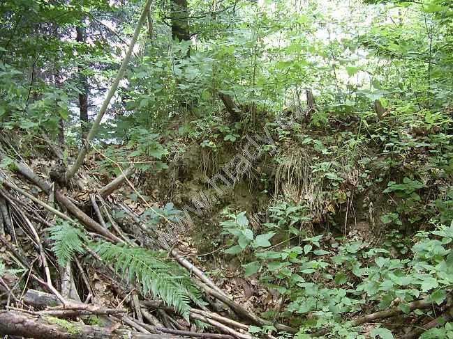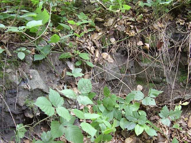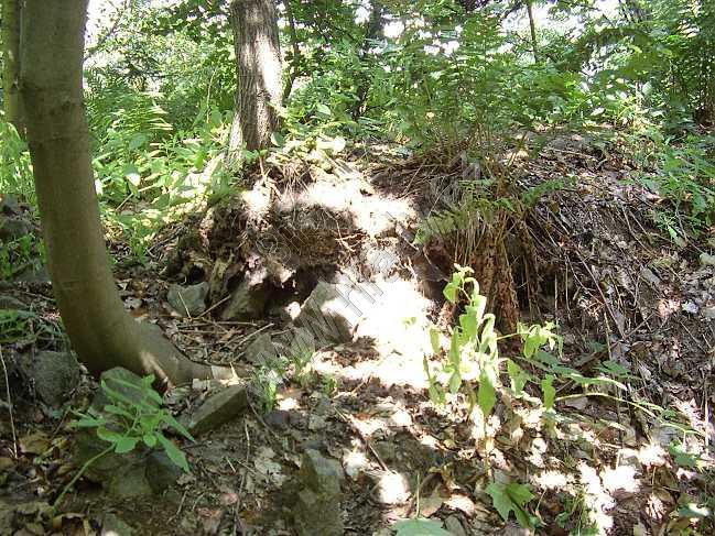 Úlomek zdiva pod drnem ve východní části hradního areálu.