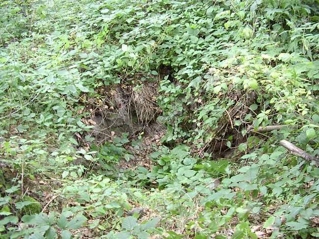 Uprostřed areálu se nachází tato malá prohlubeň se zbytky zdiva.