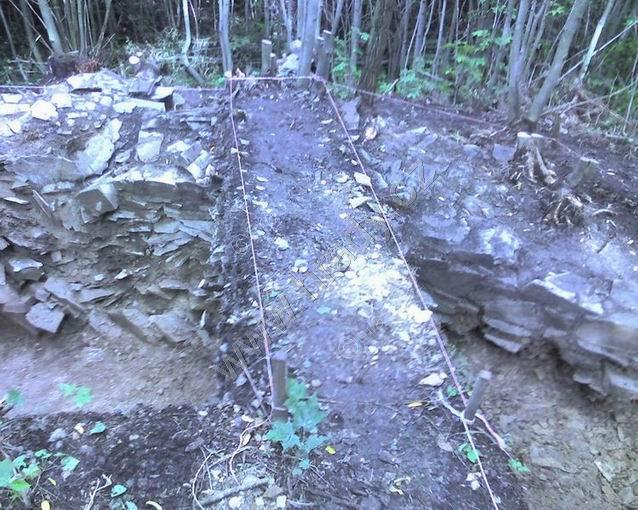 V tomto místě se nacházel přístup do hradu, pohled z vnitřního valu na vlastní jádro.