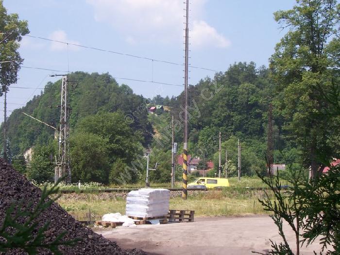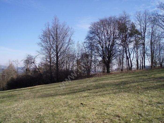 Pohled od západu na místo, kde jsou pozůstatky hradu.