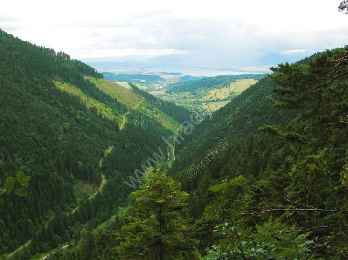 Výhled z hradu k jihovýchodu, k nádrži Liptovská Mara