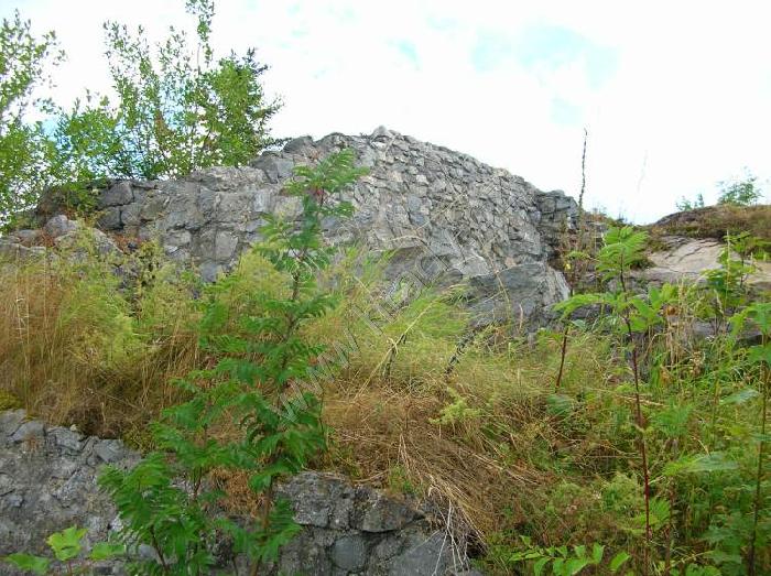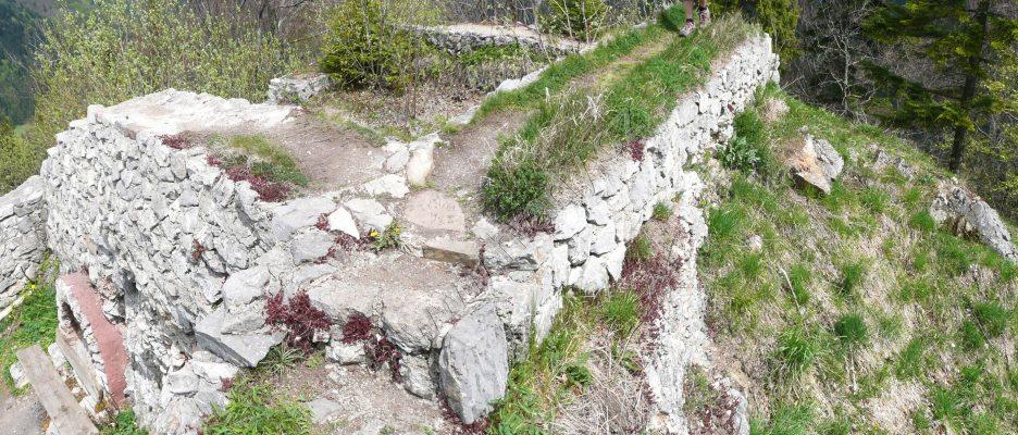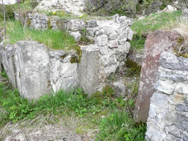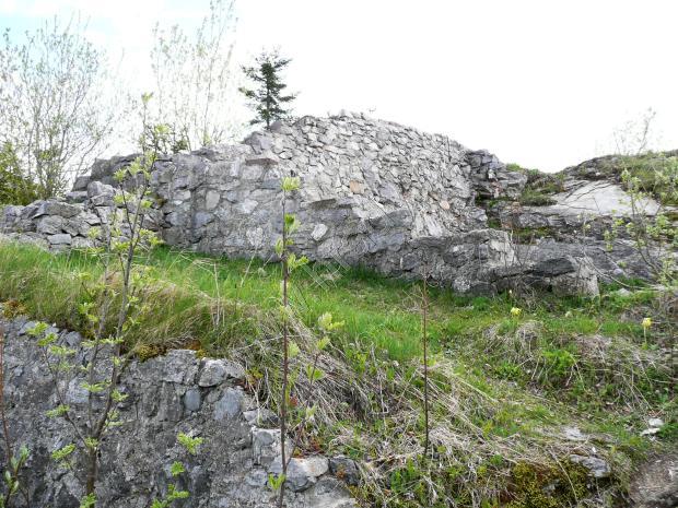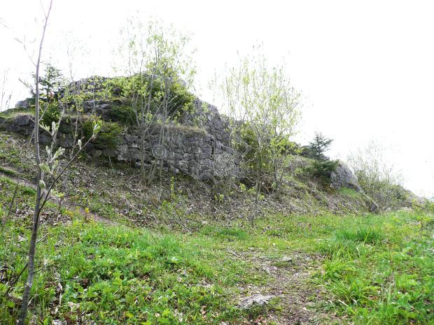 pozůstatky zdiva lichoběžníkové věže v severovýchodní části dolního hradu