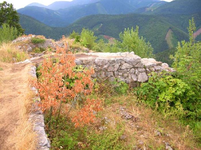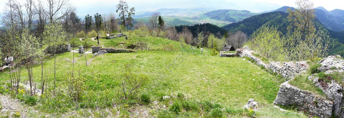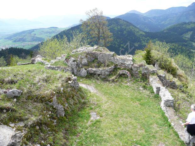 celkový pohle dna vrchol hradního kopce s pozůstatky hradu Liptova