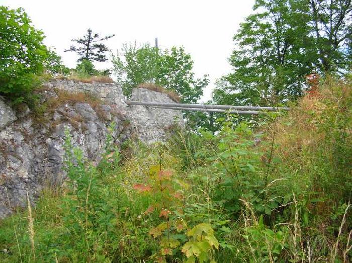 pohled do ohrazeného prostoru s cisternou horního hradu
