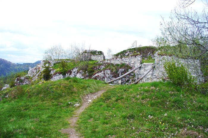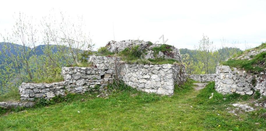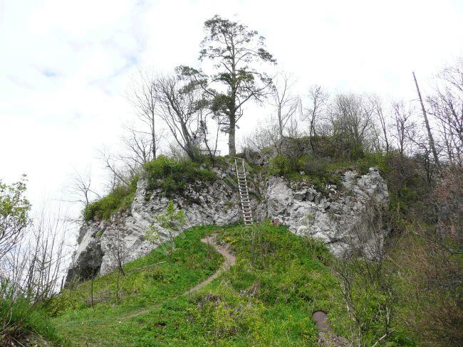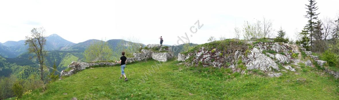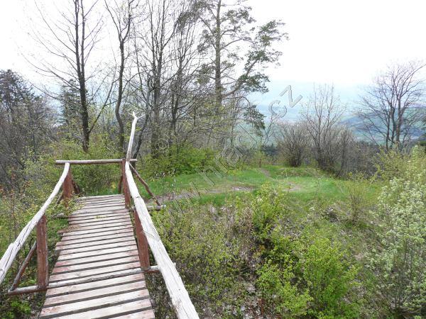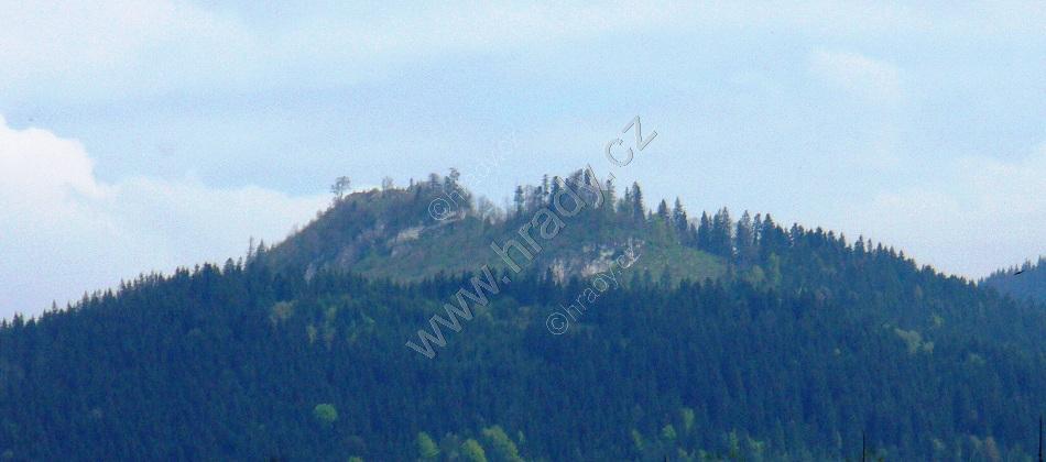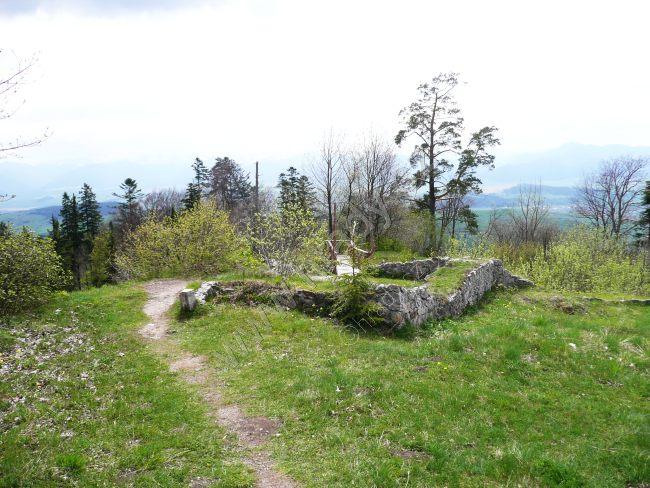 pohled na vrchol hradního kopce s pozůstatky hradu Liptov