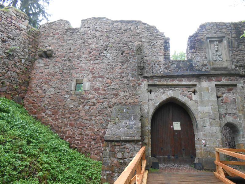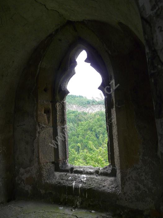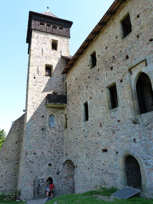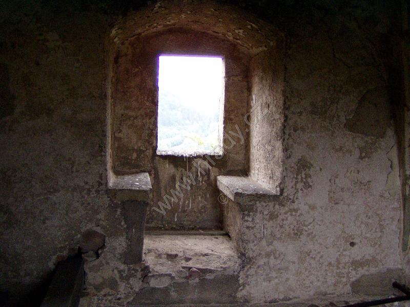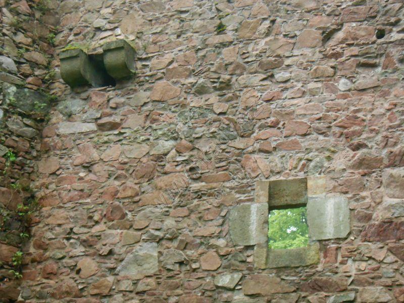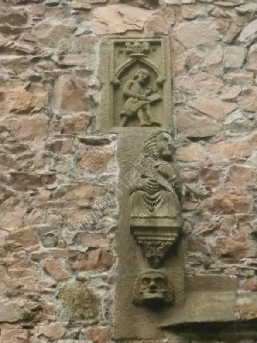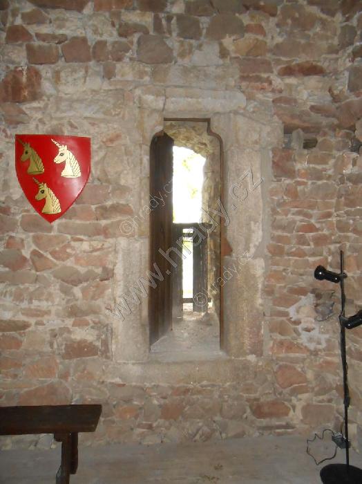 Vlevo od brány asi pozorovací otvor, výše konzolky pro vlašský komín (za informaci děkuji vedení hradu)