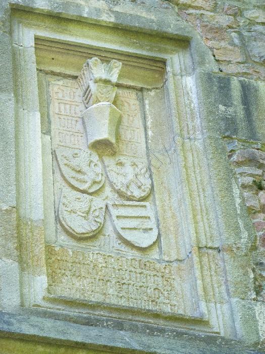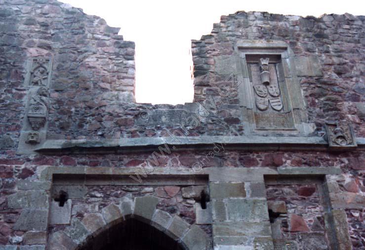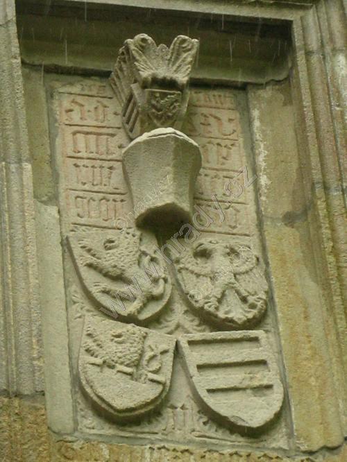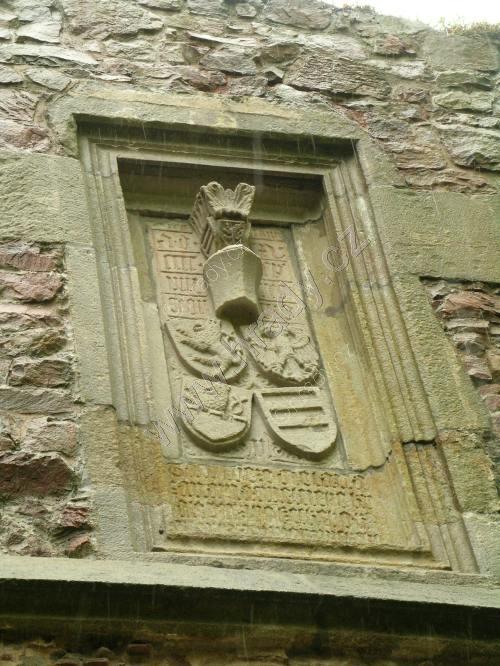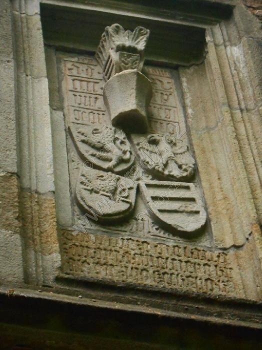 Reliéf s erby na 1. bráně, vpravo dole páni z Kunštátu