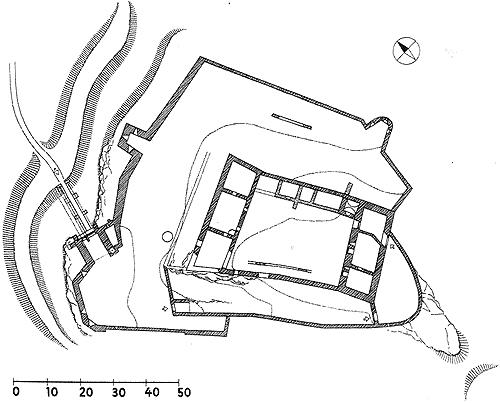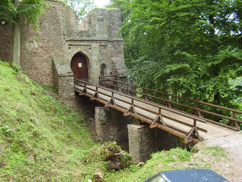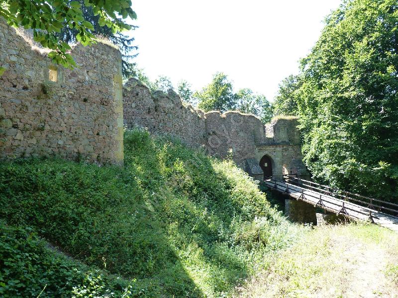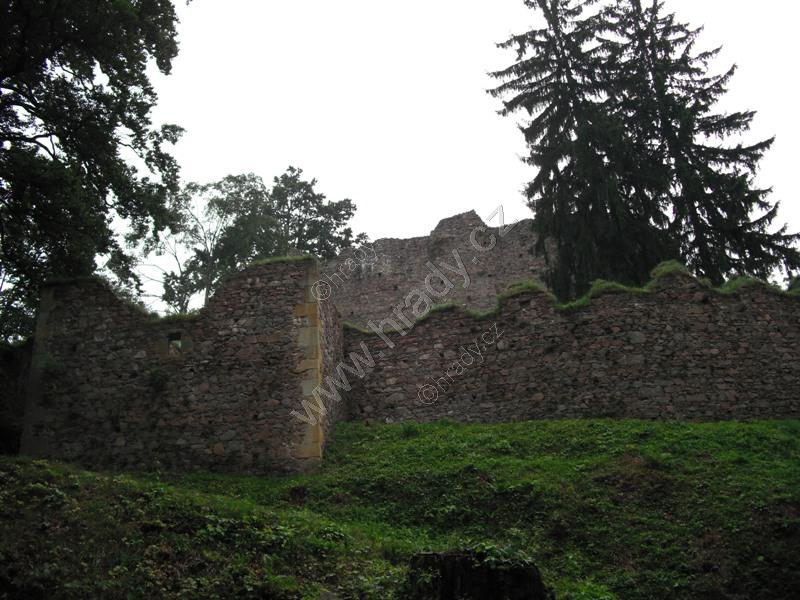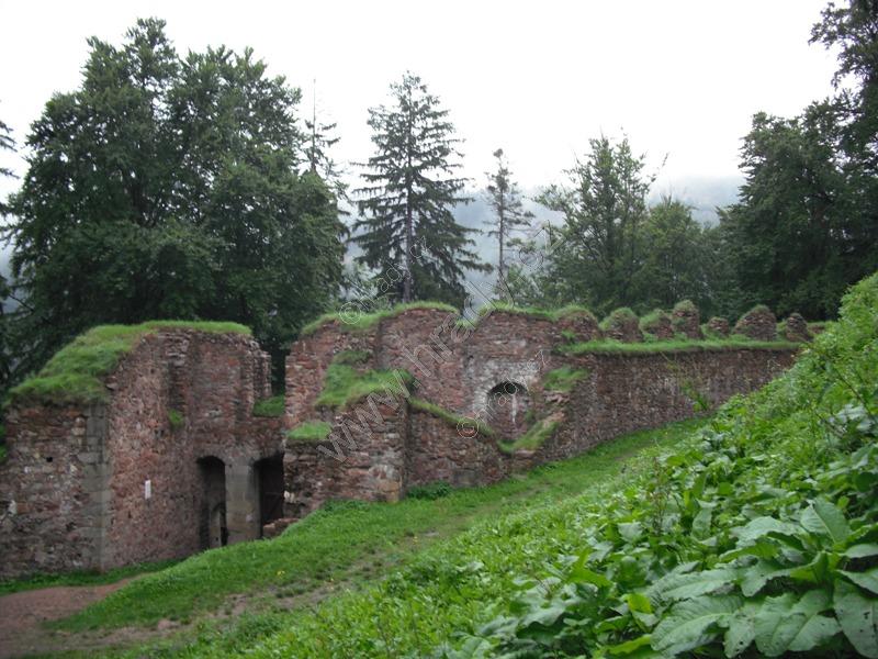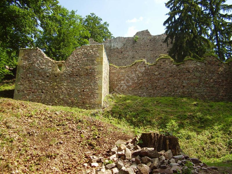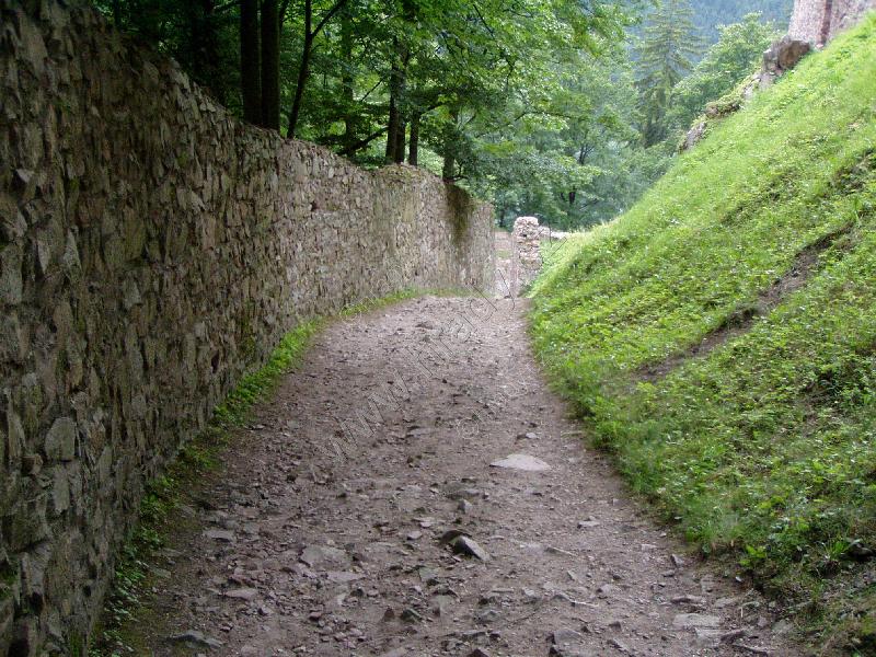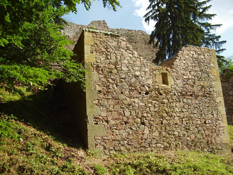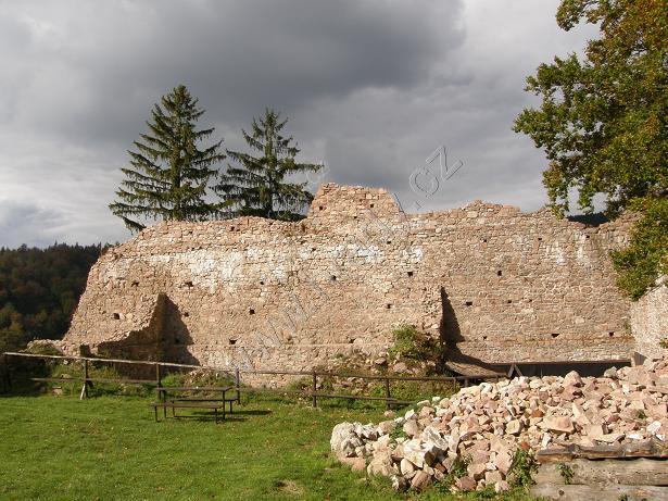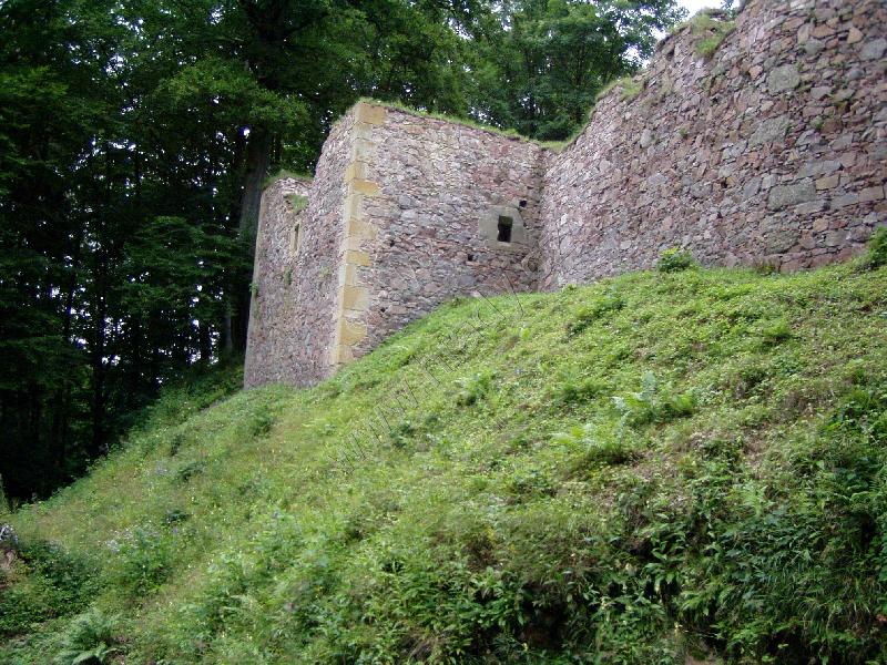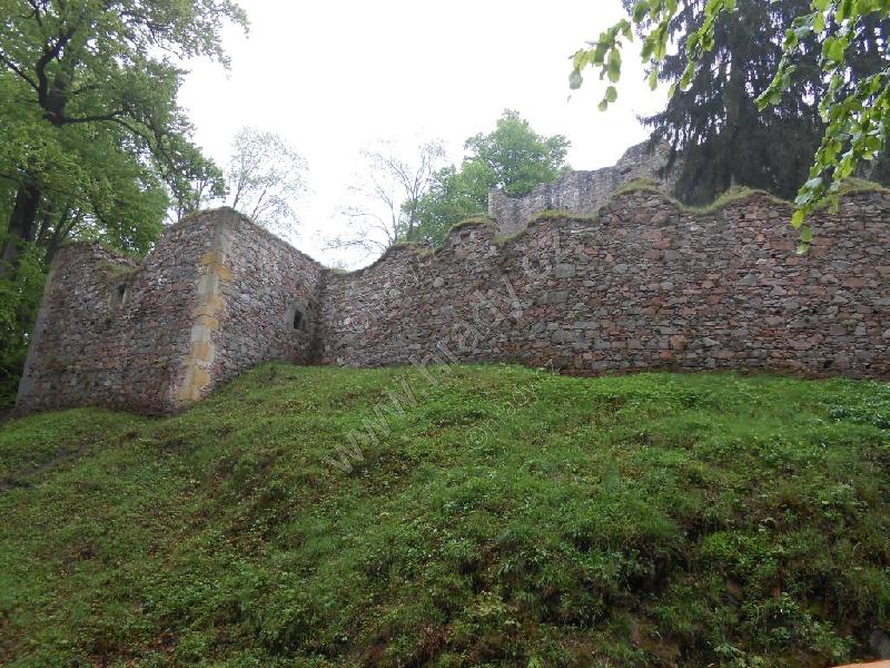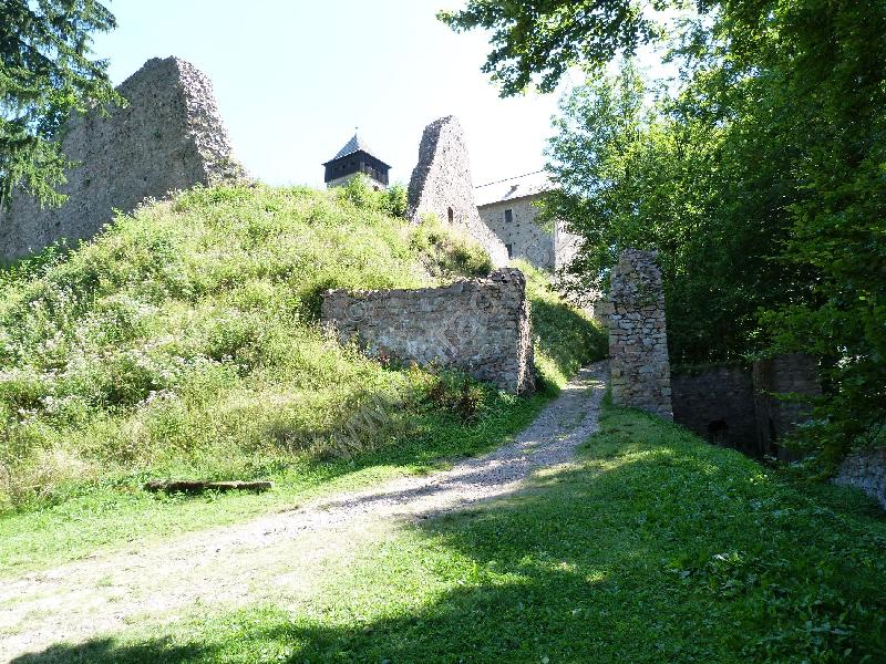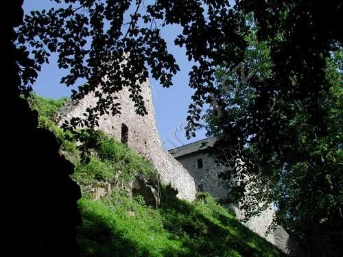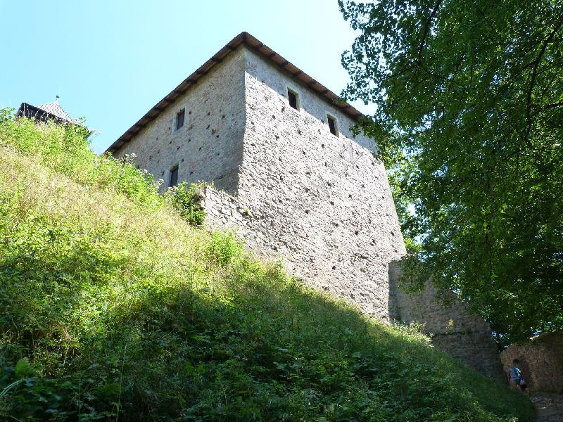 Čelní hradba vlevo od 1. brány, čtverhranná bašta využitá jako obydlí poustevníka, který prý chodil loupat zlatý nápis na bráně :)