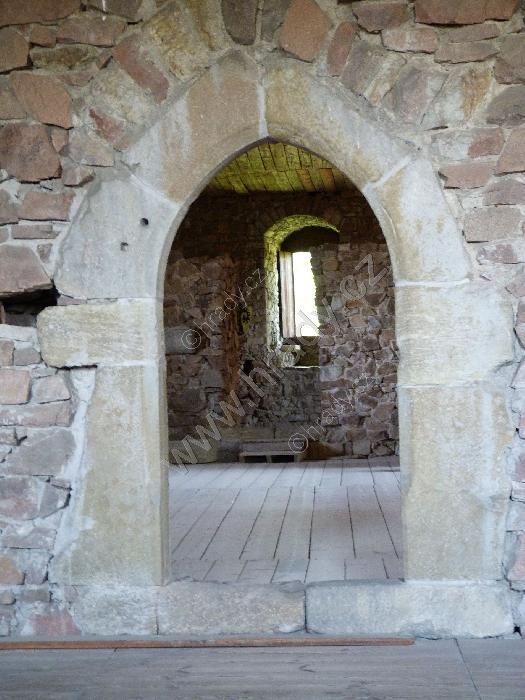 Sedlový portálek vedoucí k prevétu ve 2. patře jižního paláce