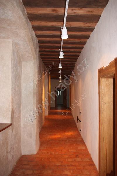 Chodba v patře křídla mezi Markrabským domem a rotundou
