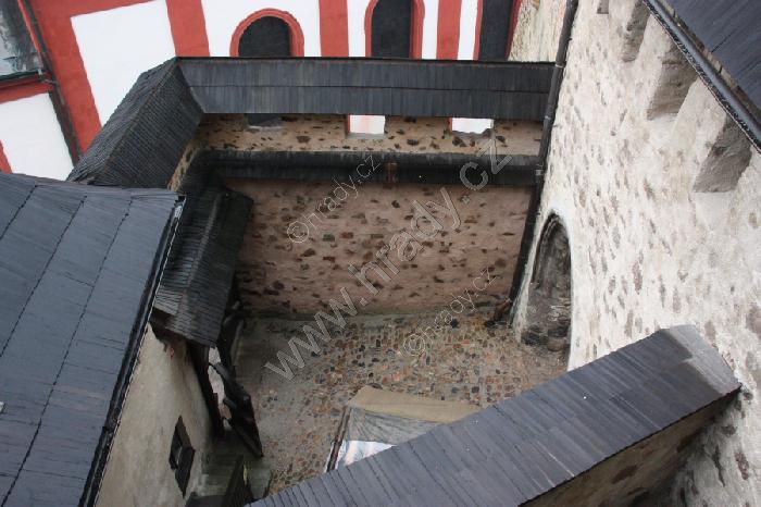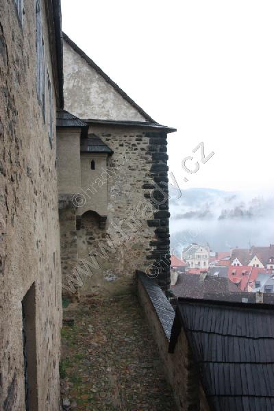Ochoz na hradbě mezi Markrabským domem a dolním křídlem