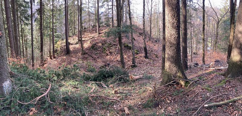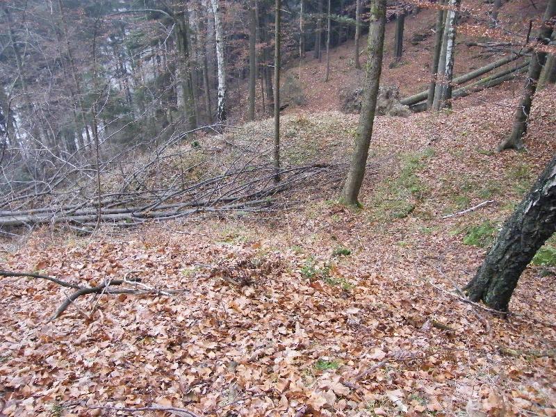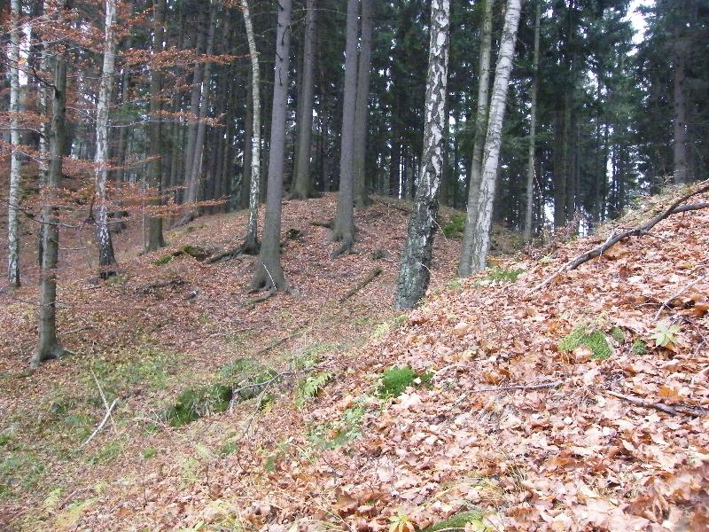 Mladkovský hrádek - záběr boční strany čelního příkopu