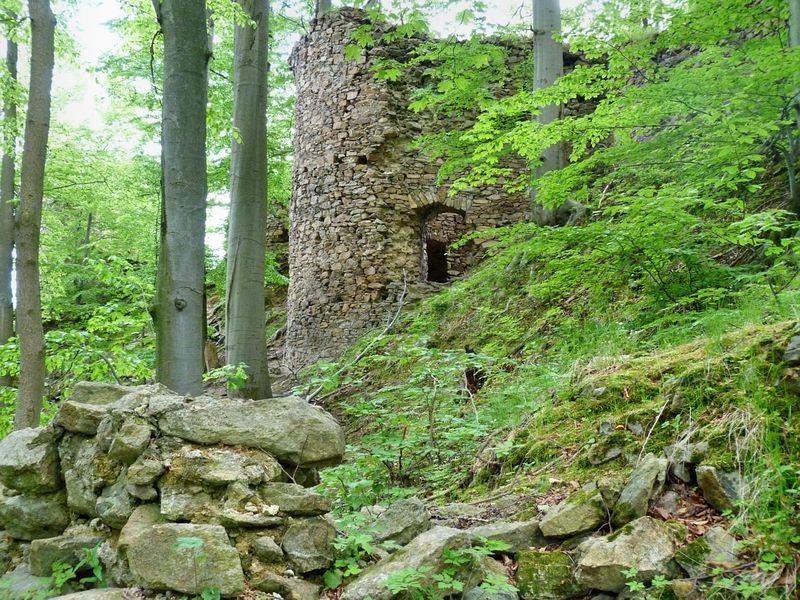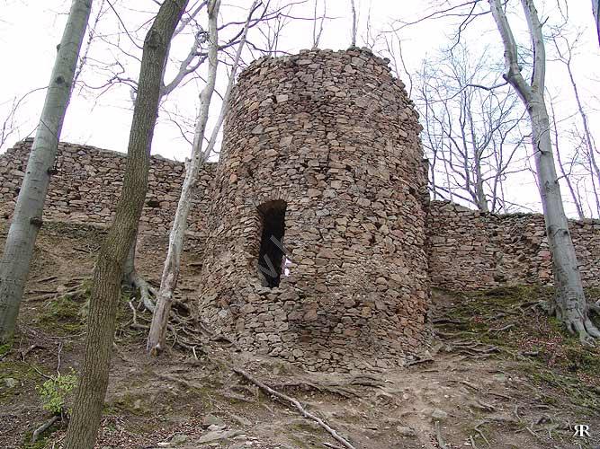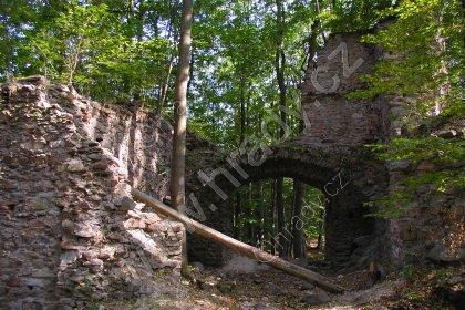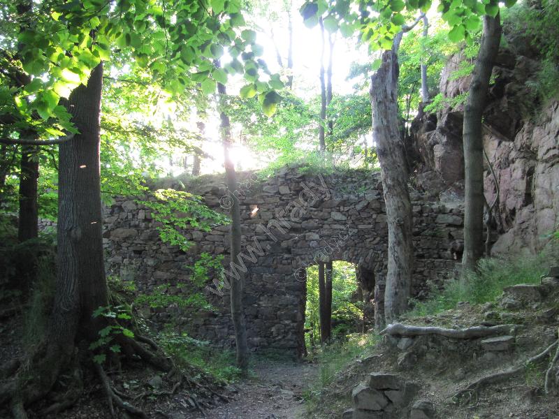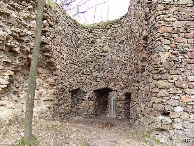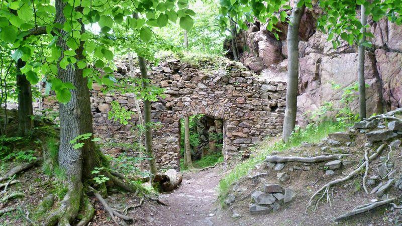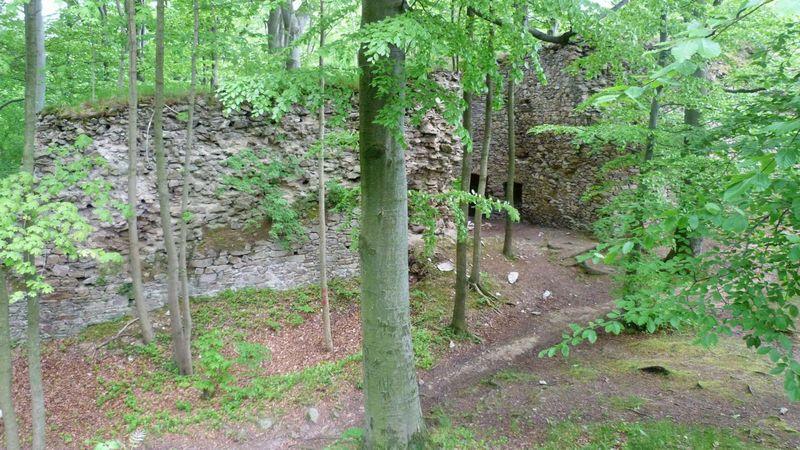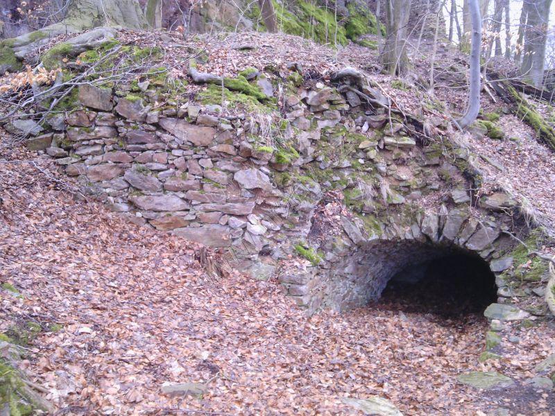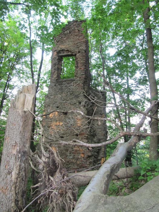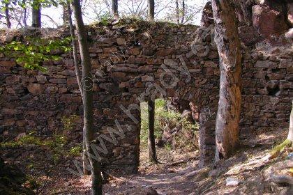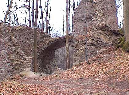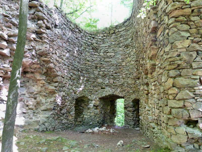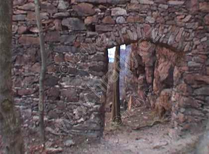 Otvor neznámé funkce (střílna?, odpad?) kousíček vlevo od pozůstatků omítky (obrázek výše), v literatuře jsem se o něm nedočetl