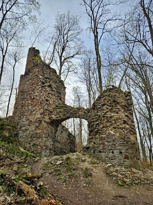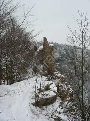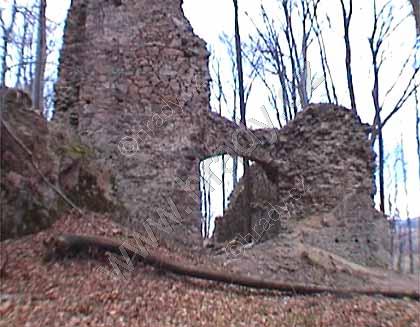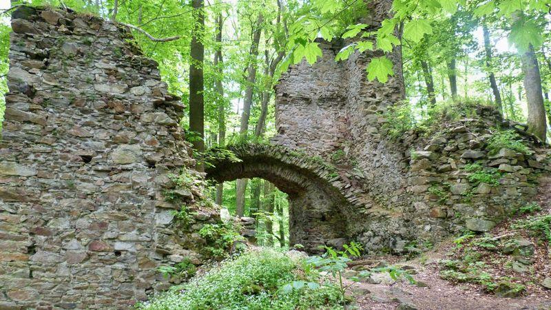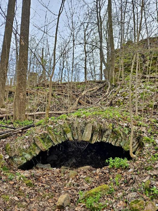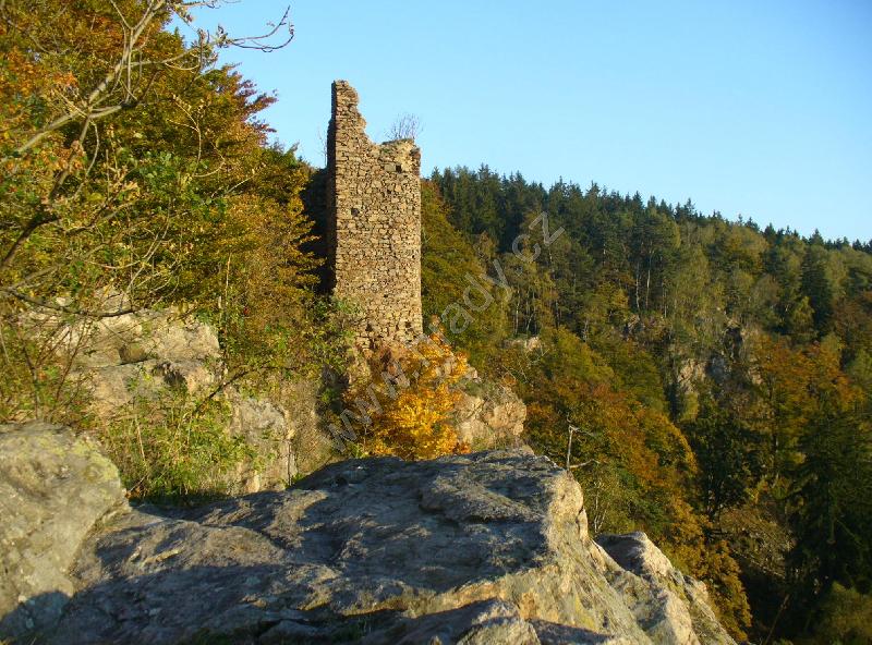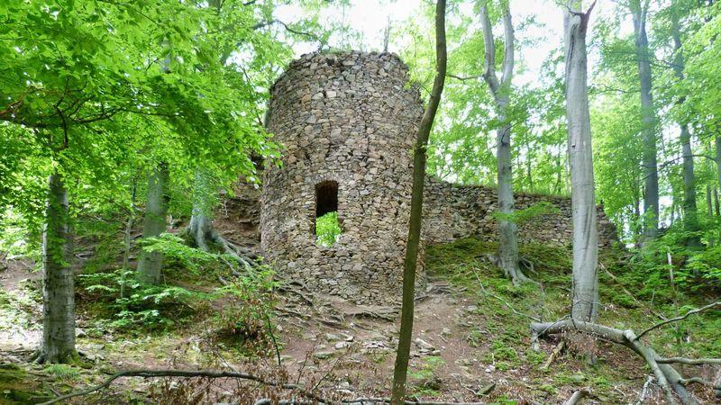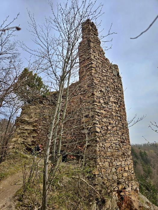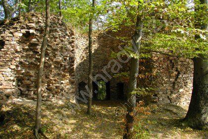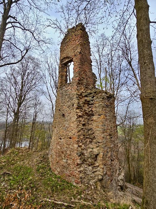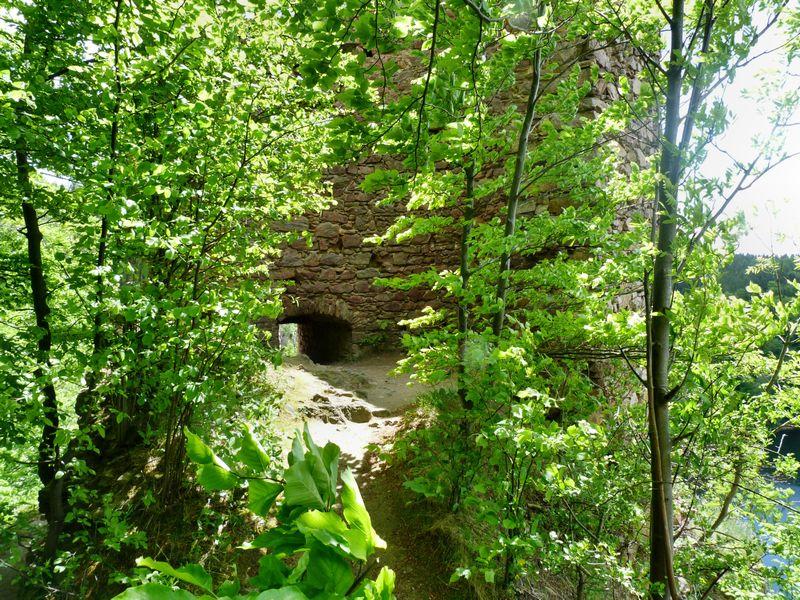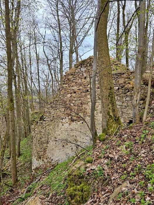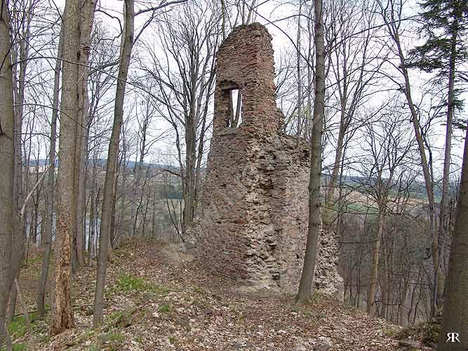 Otvor neznámé funkce (střílna?, odpad?) kousíček vlevo od pozůstatků omítky (obrázek výše), v literatuře jsem se o něm nedočetl