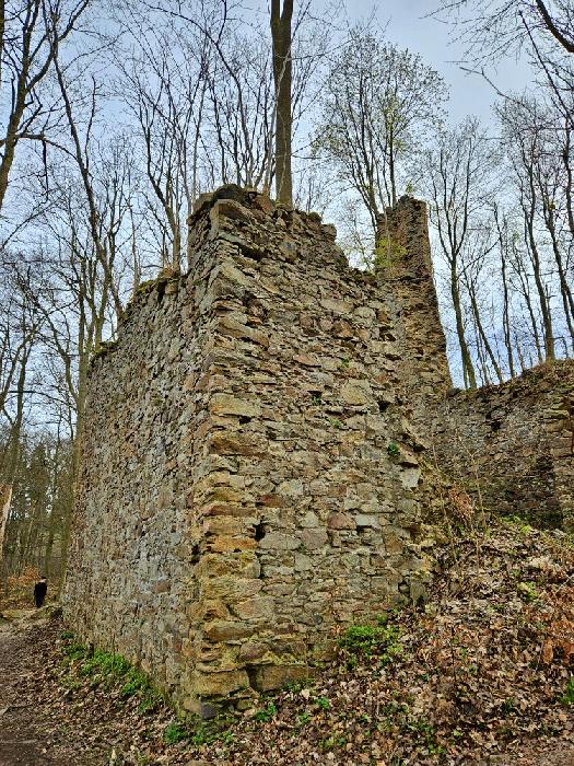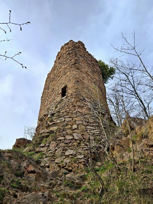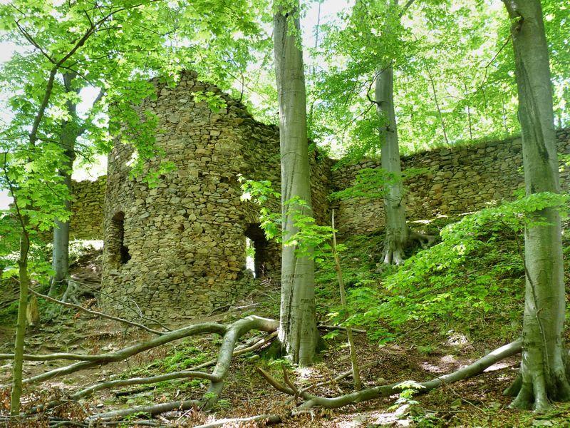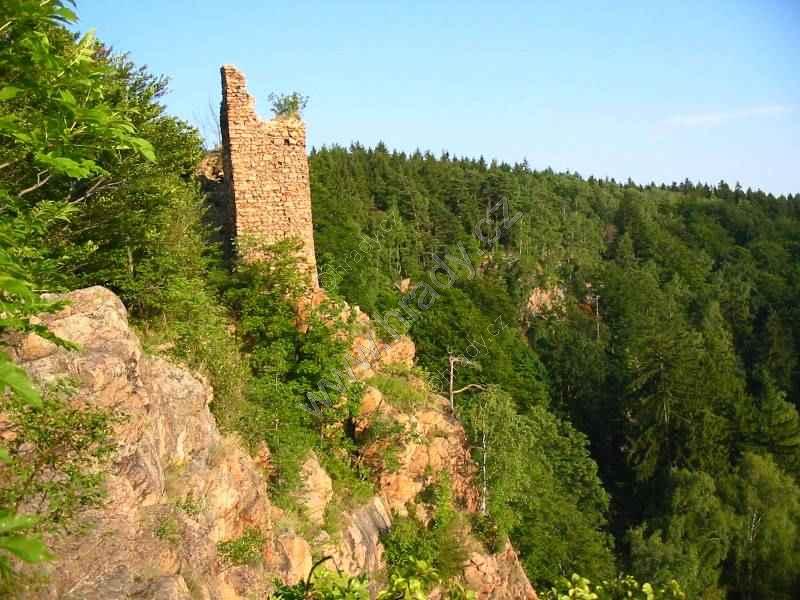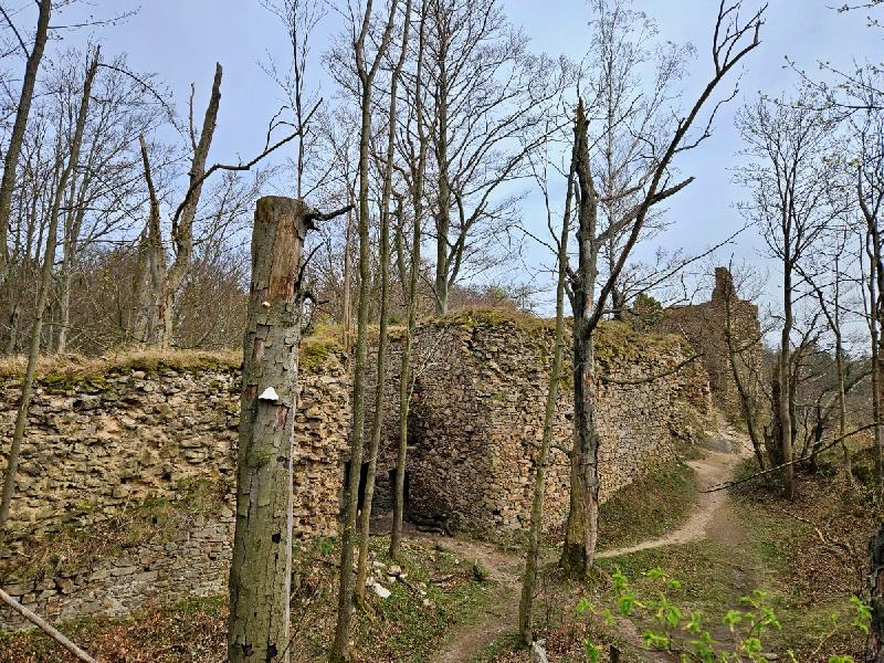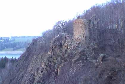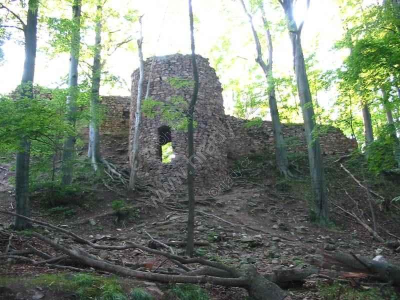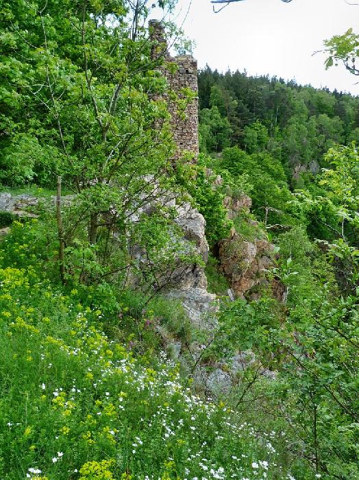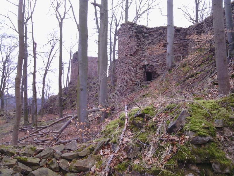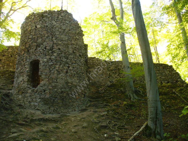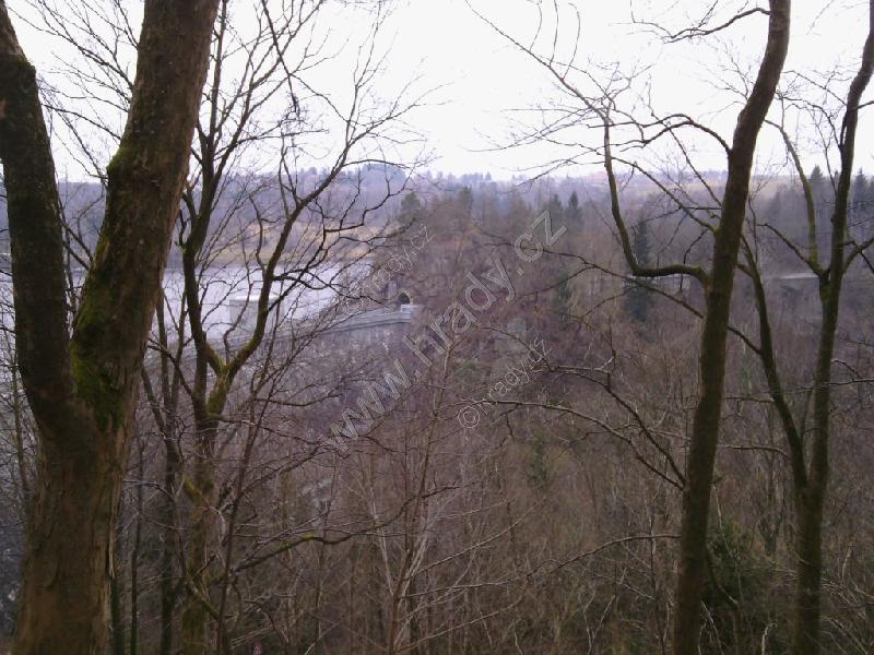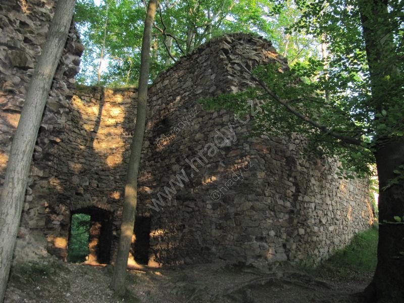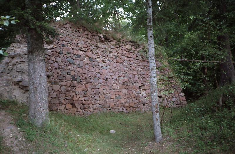 Jižní bašta je protažena do jakéhosi břitu, níže vidět její skarpovité základy